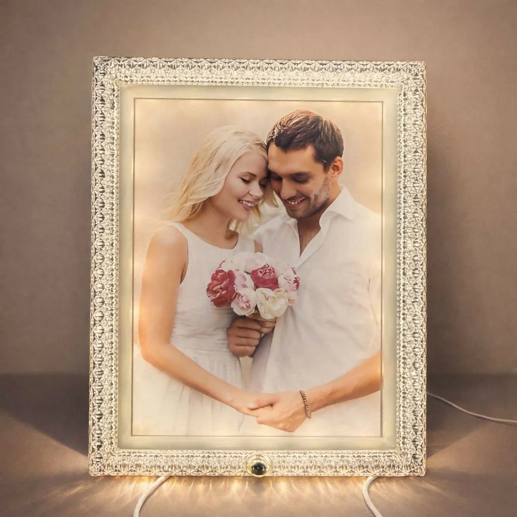 Highlight your precious memories with this elegant LED decorative photo frame. Designed with a beautifully detailed border and soft warm lighting, it enhances your photos while adding a cozy and stylish touch to your space. Perfect for bedside tables, living rooms, or office desks, this illuminated frame creates a relaxing ambiance and makes a thoughtful gift for loved ones.