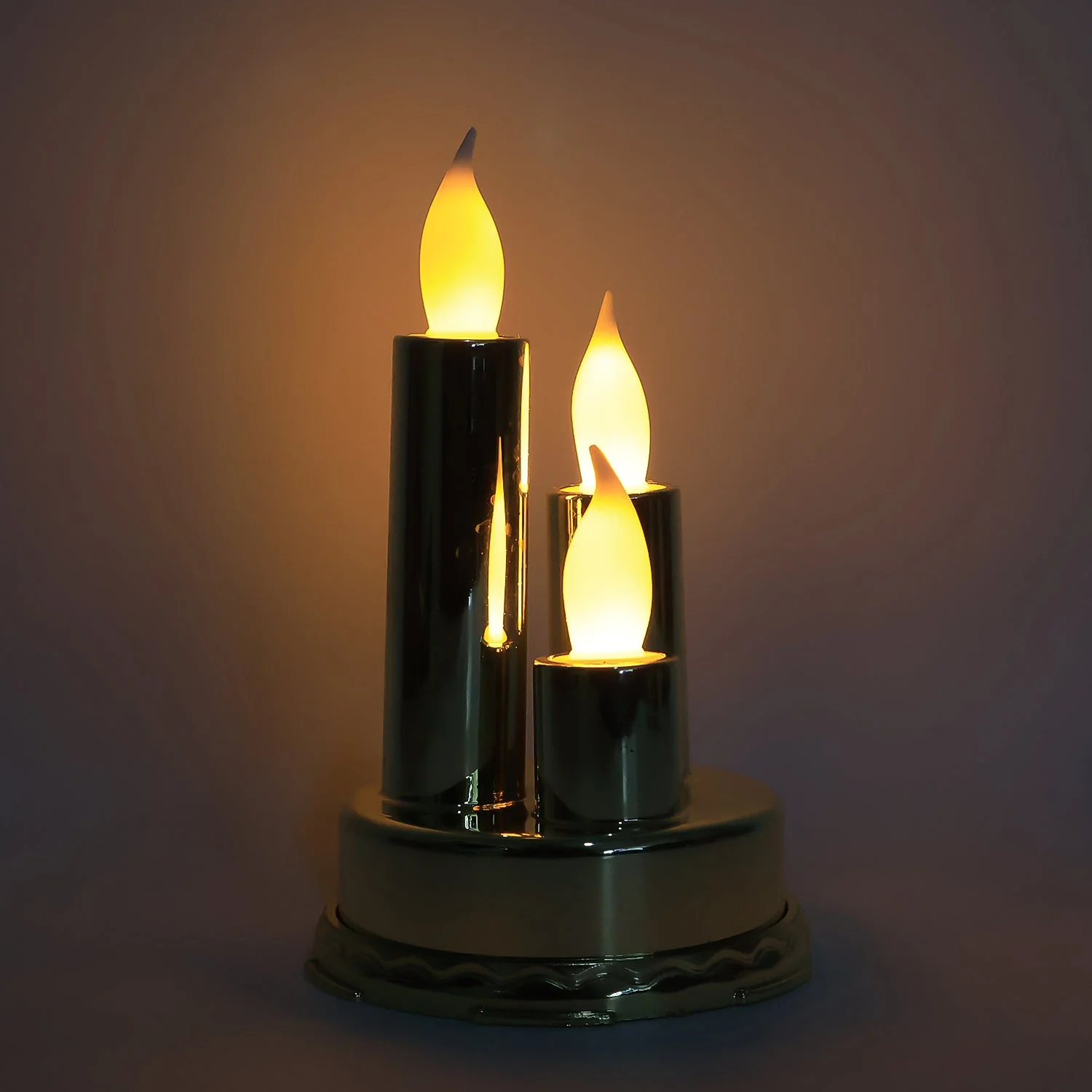 LED Flameless Candle Lamp with Triple Candle Design – Golden Decorative Electronic Candle Light for Home, Festivals, Parties, and Gifting, Diwali Item – 1 Pc