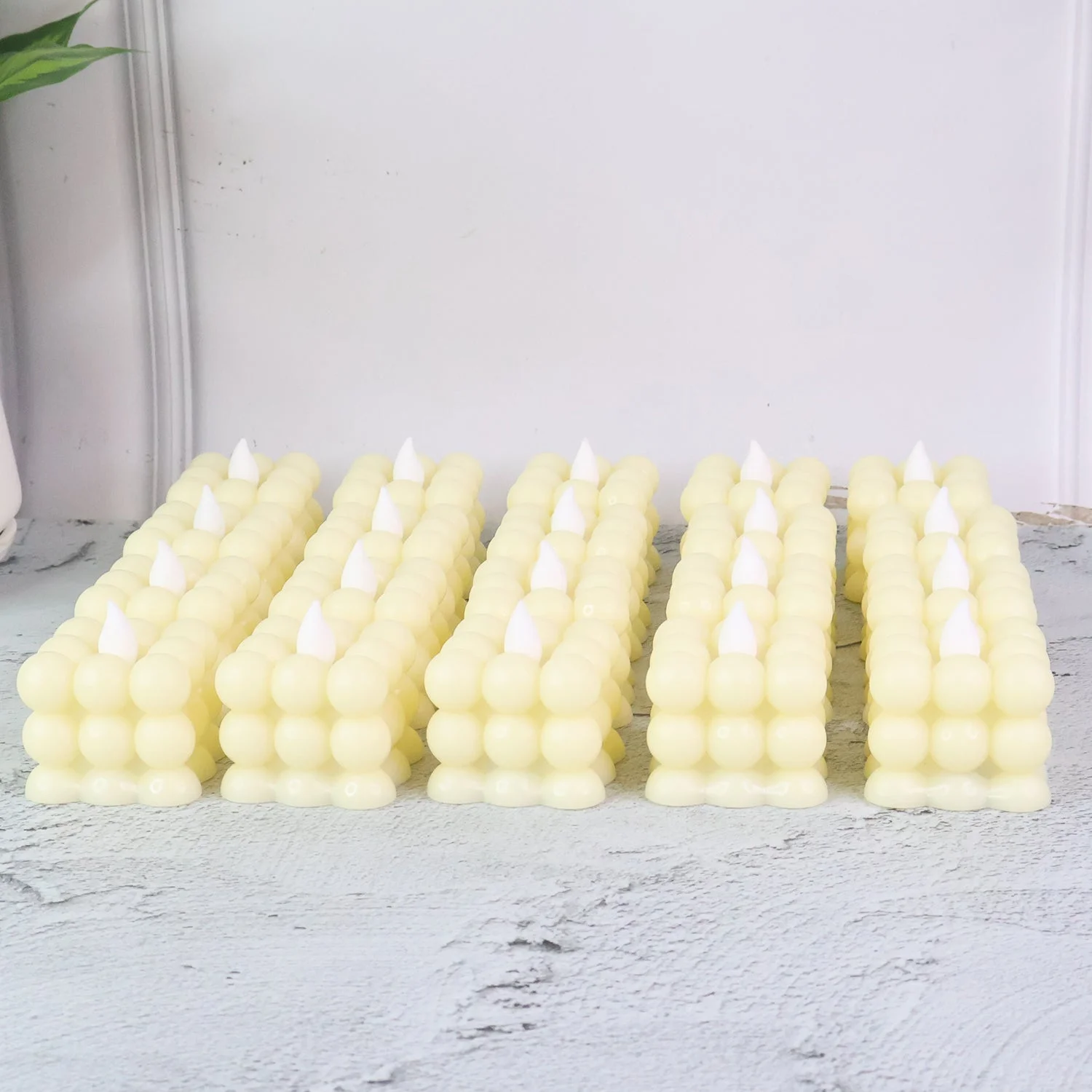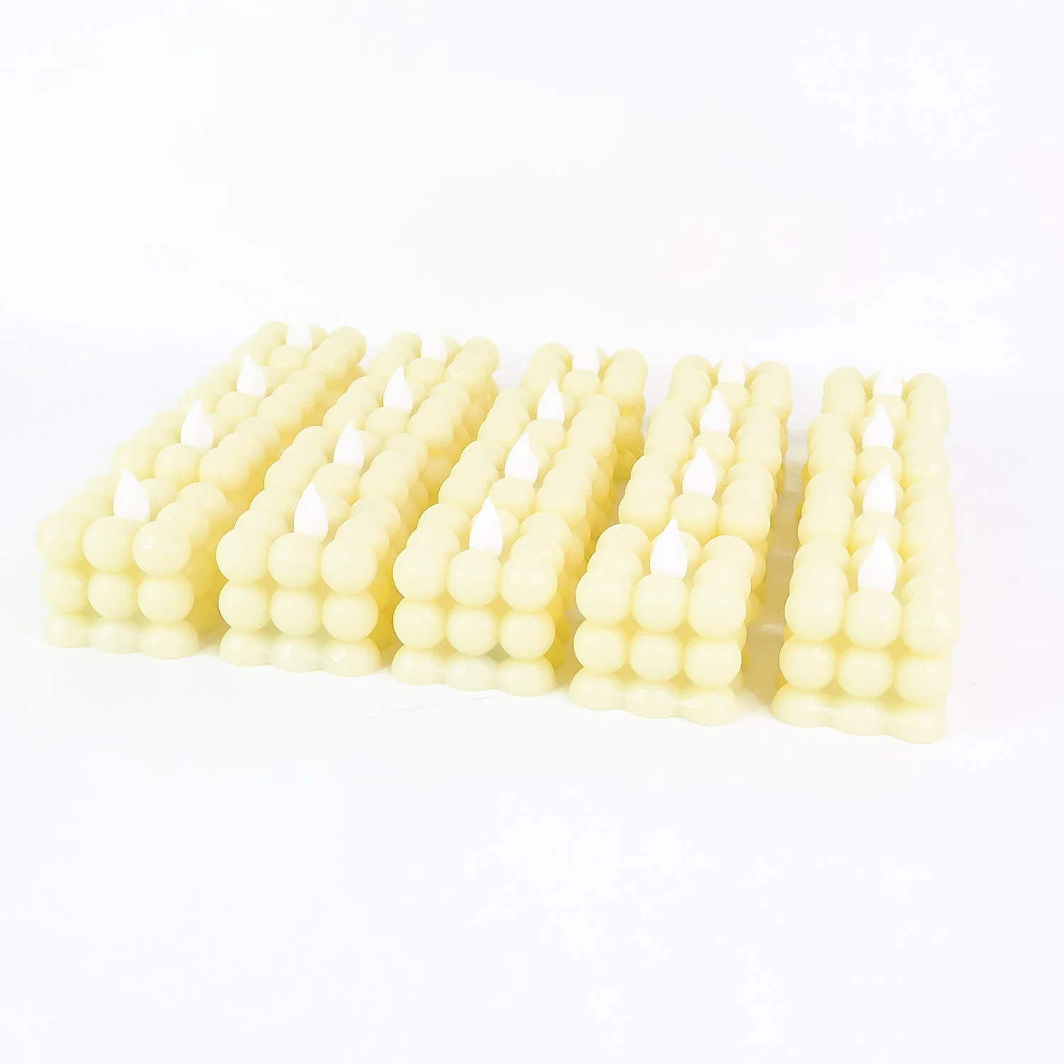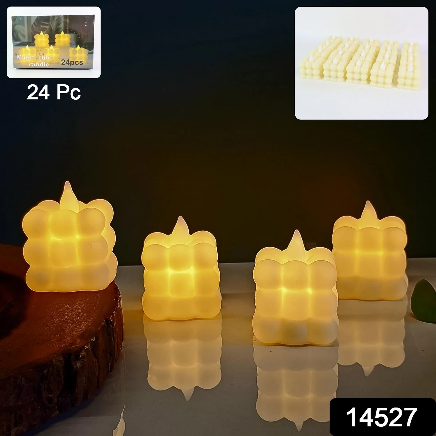 This set of 24 LED flameless cube candles adds elegance and warmth to your celebrations and everyday decor. With their unique cube-bubble design and soft LED glow, these candles provide a realistic flame-like effect without the hazards of fire, smoke, or dripping wax.