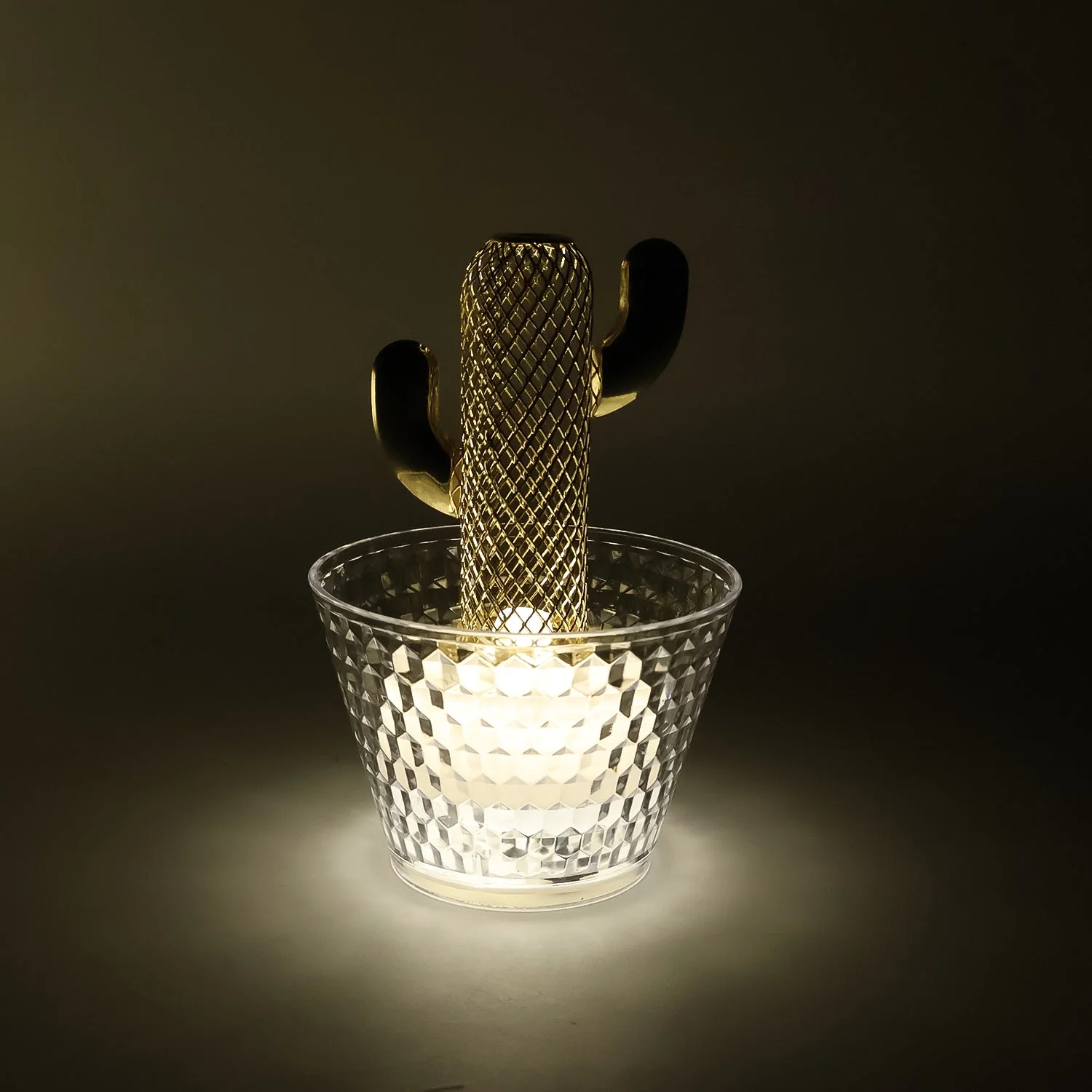 Unique cactus design with crystal-effect transparent holder