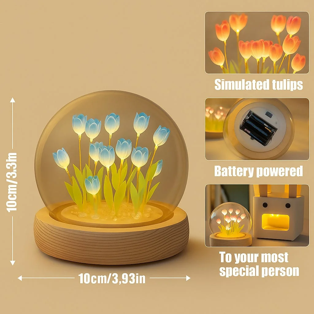 LED rainbow tulip light | multicolor flower dome lamp | glass dome floral LED lamp | color changing tulip night light | home decor tulip lamp | wooden base tulip light | tulip lamp gift for girls | ambient night light floral decor | decorative tulip LED lamp | rainbow flower night lamp