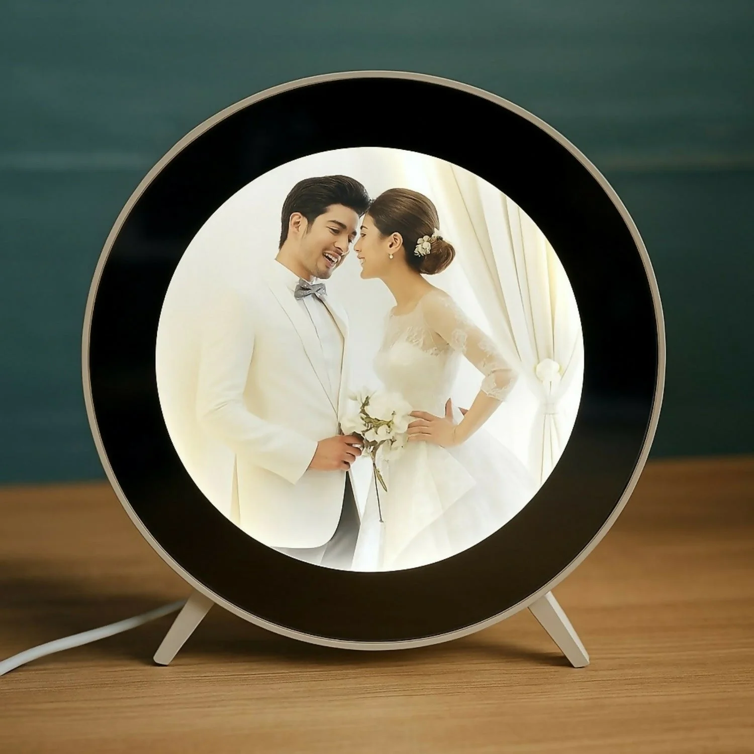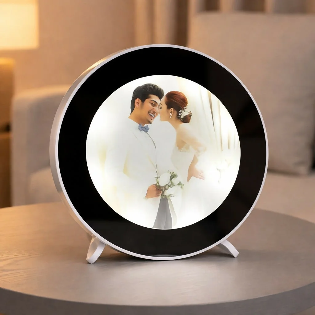 Showcase your special memories with this elegant LED photo frame lamp that doubles as a mirror when switched off. Designed with a sleek round shape, it illuminates your favorite photo with a soft glow when turned on, and transforms into a stylish mirror when off. This dual-purpose design makes it perfect for modern homes, adding both functionality and décor. Ideal for bedside tables, desks, or gifting, it brings a personal and sophisticated touch to any space.