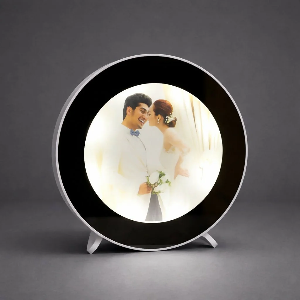 led mirror photo frame, custom photo lamp, mirror light frame, round led lamp, personalized gift lamp, table decor mirror, bedroom night lamp, couple gift frame, memory photo light, decorative led mirror