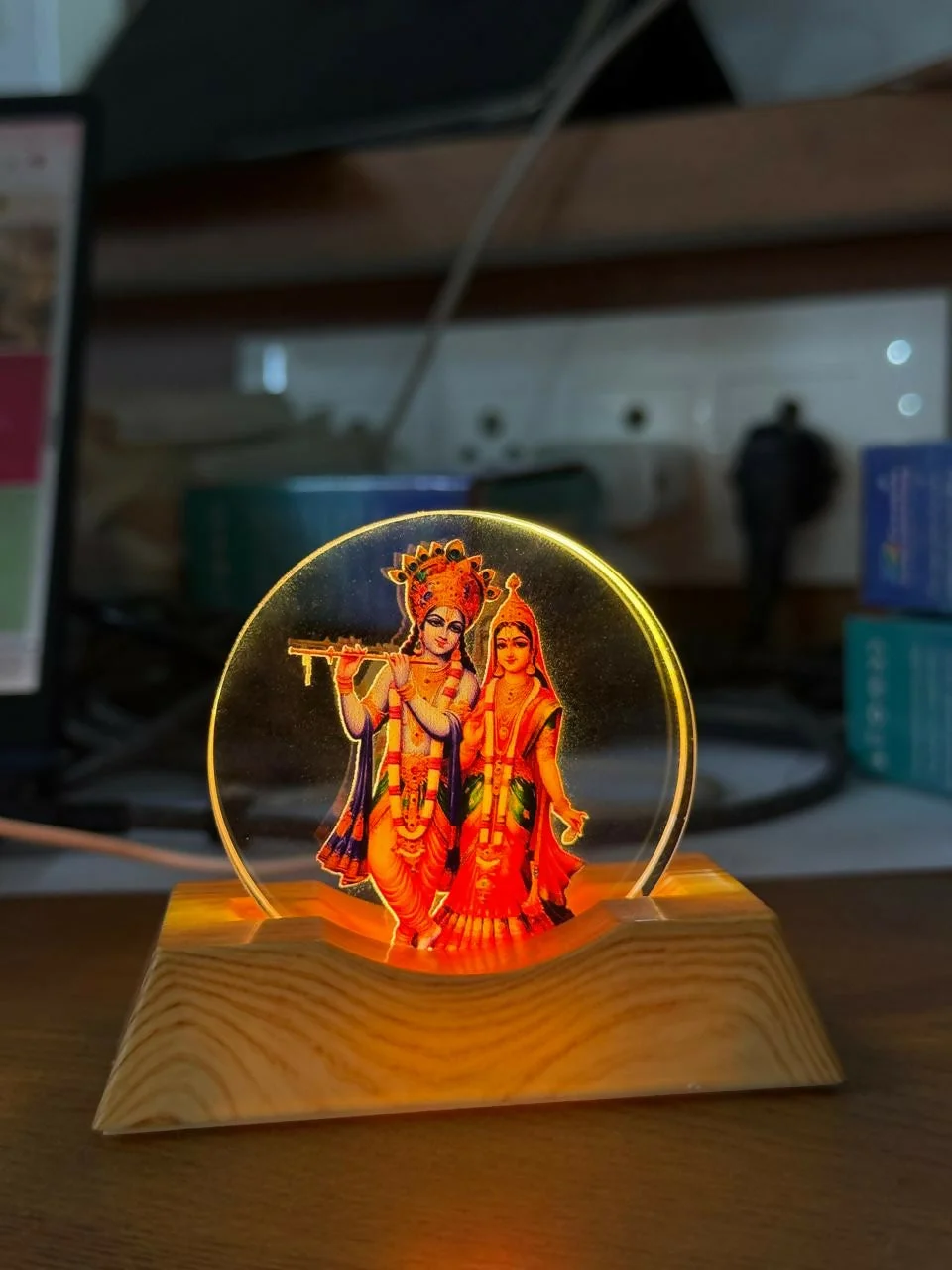 radha krishna lamp, krishna led lamp, radha krishna night lamp, spiritual led lamp, hindu god lamp, pooja room lamp, krishna decor lamp, religious decor lamp, temple decor lamp, radha krishna acrylic lamp, devotional lamp, krishna statue light, spiritual desk lamp, hindu decor lamp