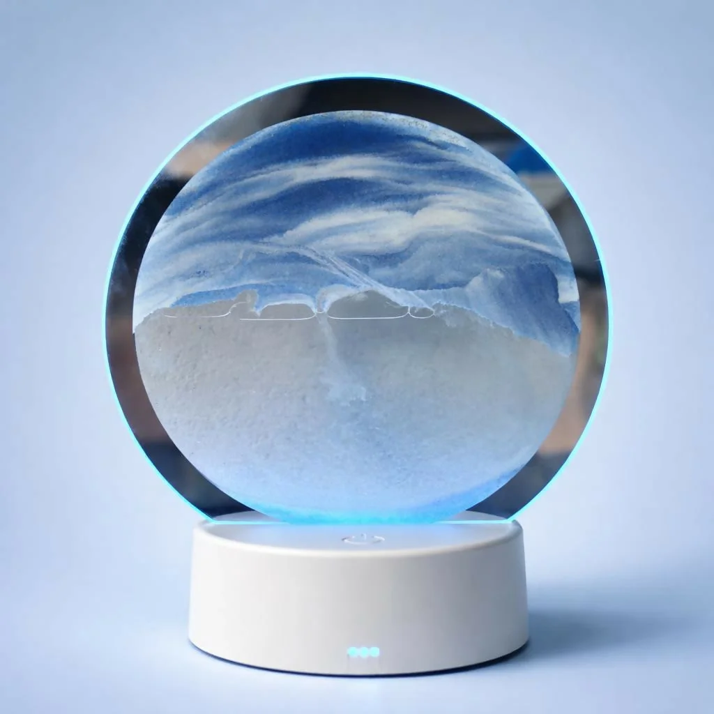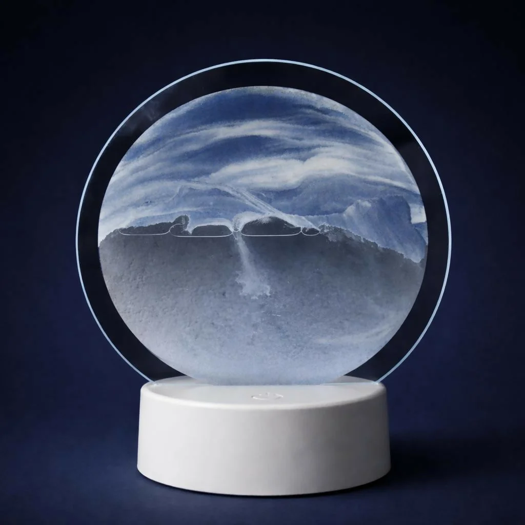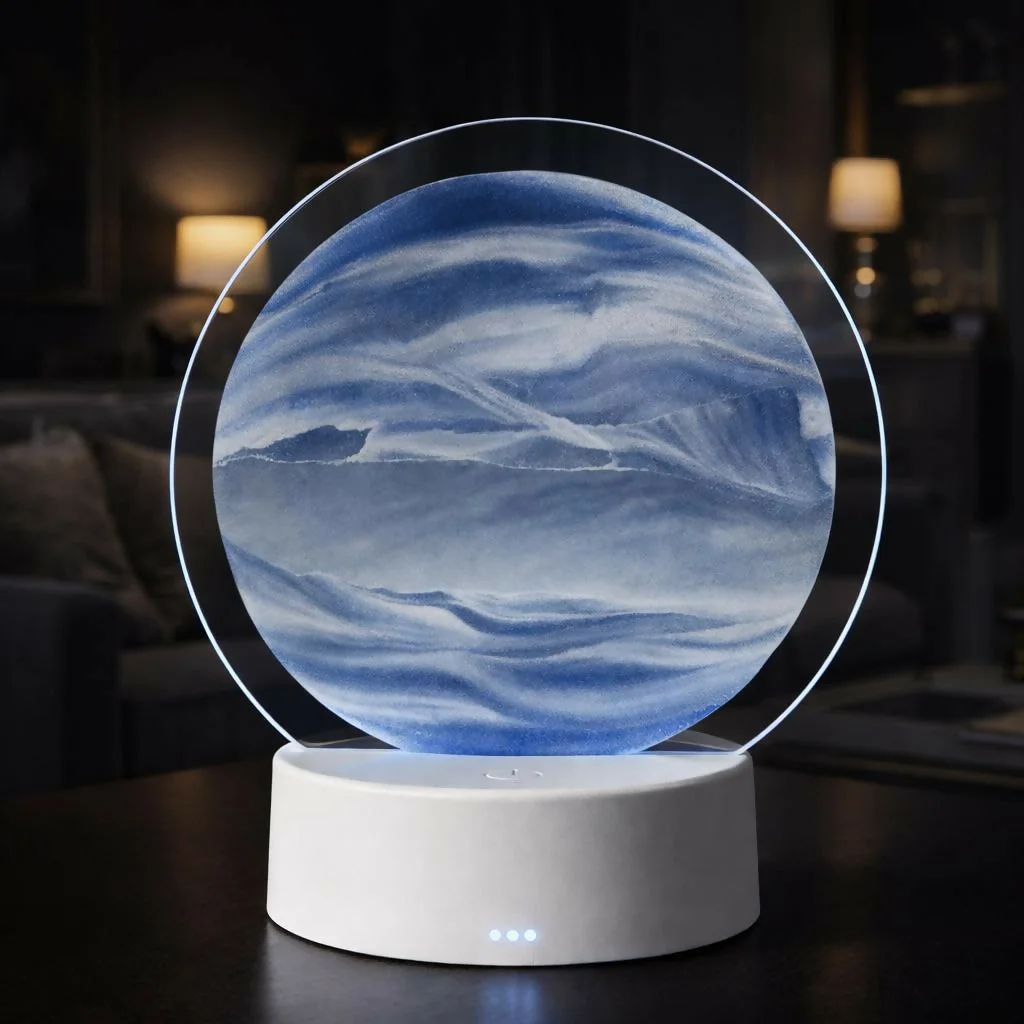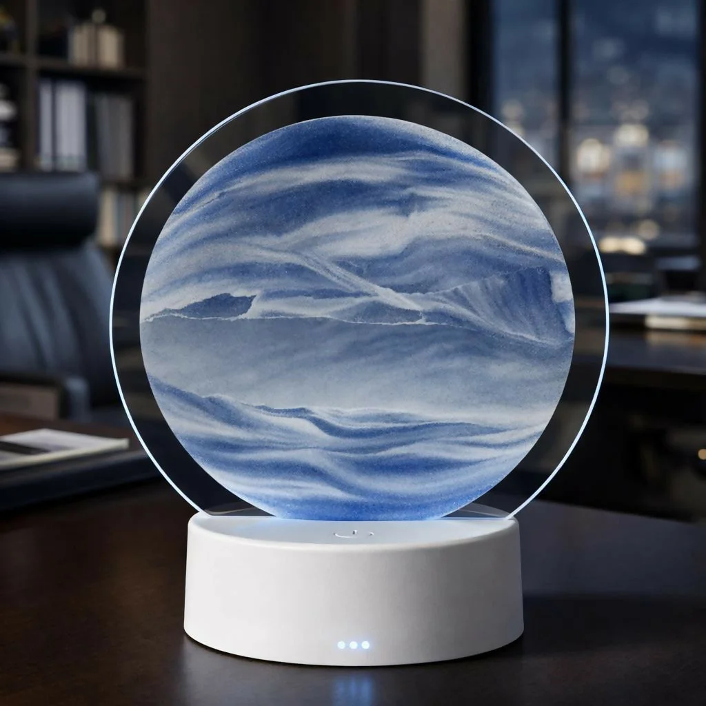 Features a fixed layered sand design that looks like a natural landscape under soft LED light.