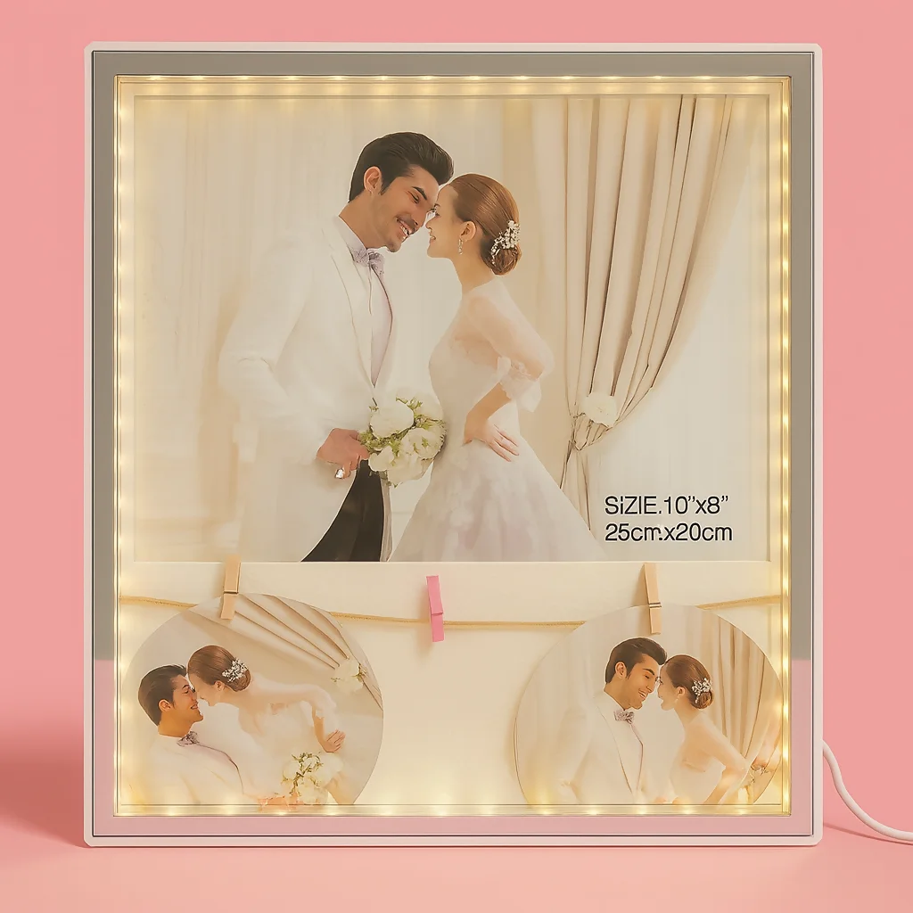 Elegant LED Photo Frame – Classic wedding couple frame with LED lights that beautifully illuminate your favorite photos.