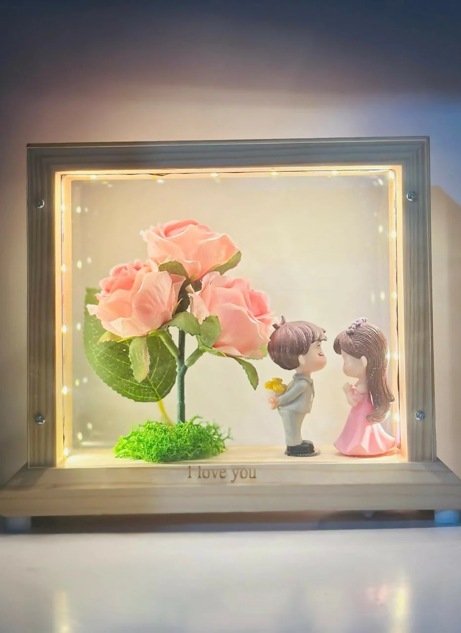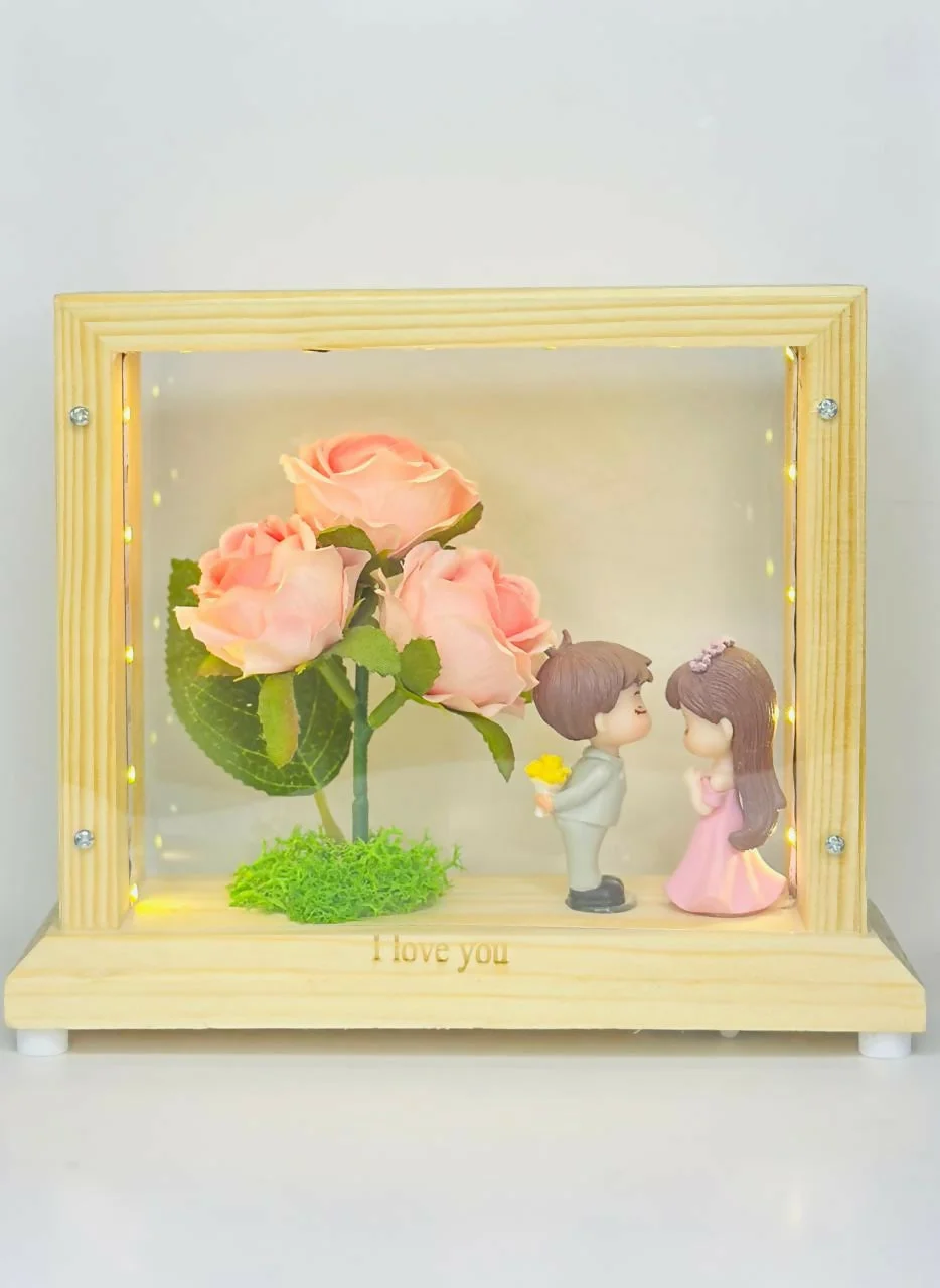 Be the first to review LED Wooden Shadow Box with Pink Rose & Couple Figurines – Gift!