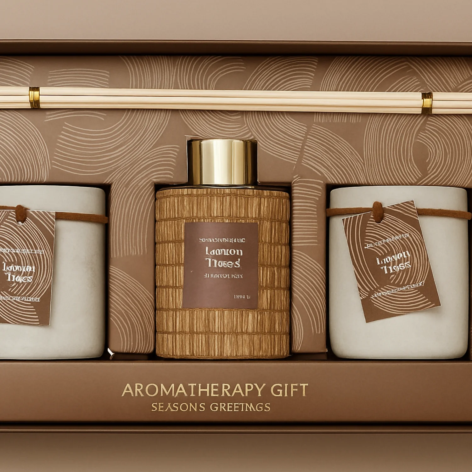 lemon trees aroma set, home fragrance kit, scented candle gift set, reed diffuser combo, aromatherapy gift set, home décor fragrance, citrus aroma diffuser, lemon scent candles, spa relaxation set, concrete candle jar, luxury home gift, wooden diffuser bottle, calming aroma candles, housewarming gift set, stress relief aroma, minimal home accessories, premium fragrance set, aromatherapy for living room, festive gifting combo, refreshing lemon fragrance