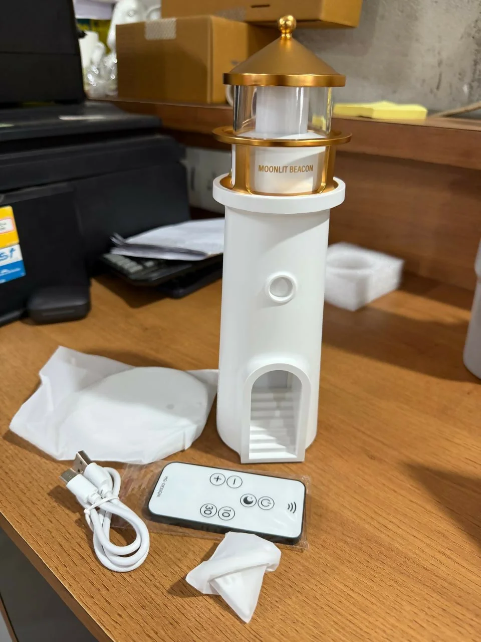 lighthouse lamp, moonlight projector lamp, USB rechargeable night light, decorative lighthouse light, remote control lamp, timer night light, 4 brightness adjustable lamp, romantic bedside lamp, kids night light projector, home décor lamp, gifting lamp for couples, anniversary night lamp, relaxing moonlight lamp, rechargeable lighthouse décor, ambient atmosphere lamp.