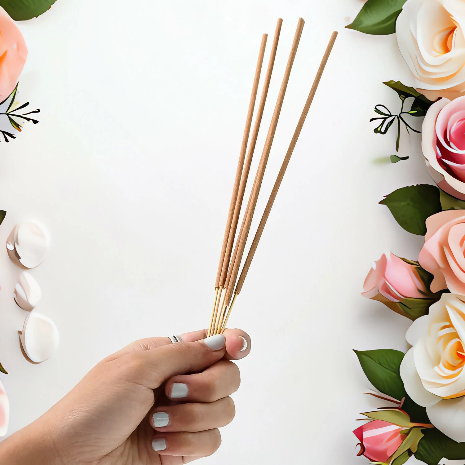 The luxurious saffron fragrance uplifts the senses, while the woody undertones bring balance and tranquility, making it ideal for daily puja rituals, meditation sessions, and festive settings. Packaged in a vibrant, culturally inspired pouch, these sticks are not only effective but also presentable—perfect for gifting or personal use.