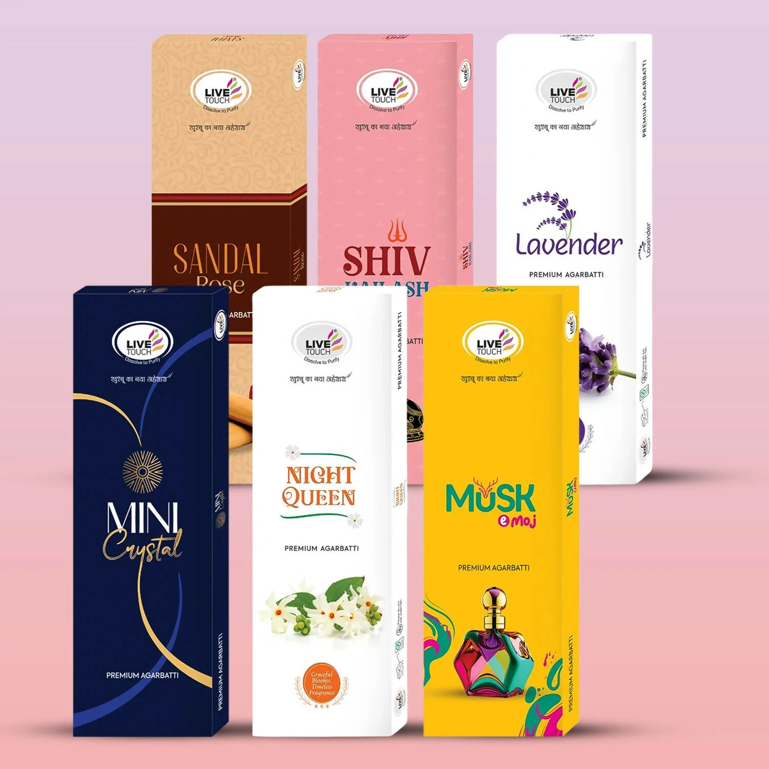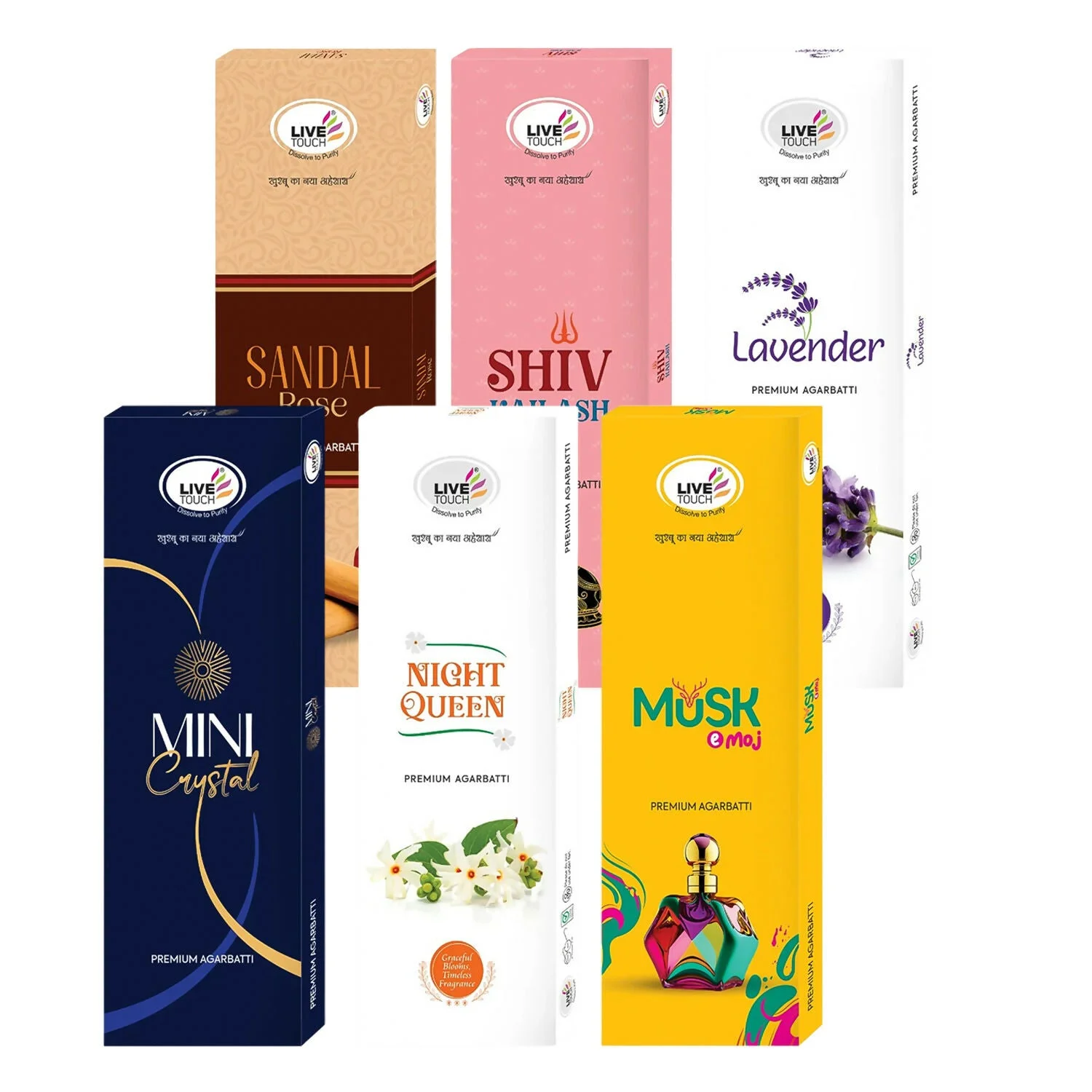 Fill your surroundings with peace, devotion, and freshness with the Live Touch Premium Agarbatti Combo Pack. This set includes 6 distinct fragrances, each crafted to provide a soothing and long-lasting aroma. Ideal for daily prayers, meditation, yoga, or simply refreshing your home environment, these incense sticks blend traditional Indian fragrances with a premium finish.