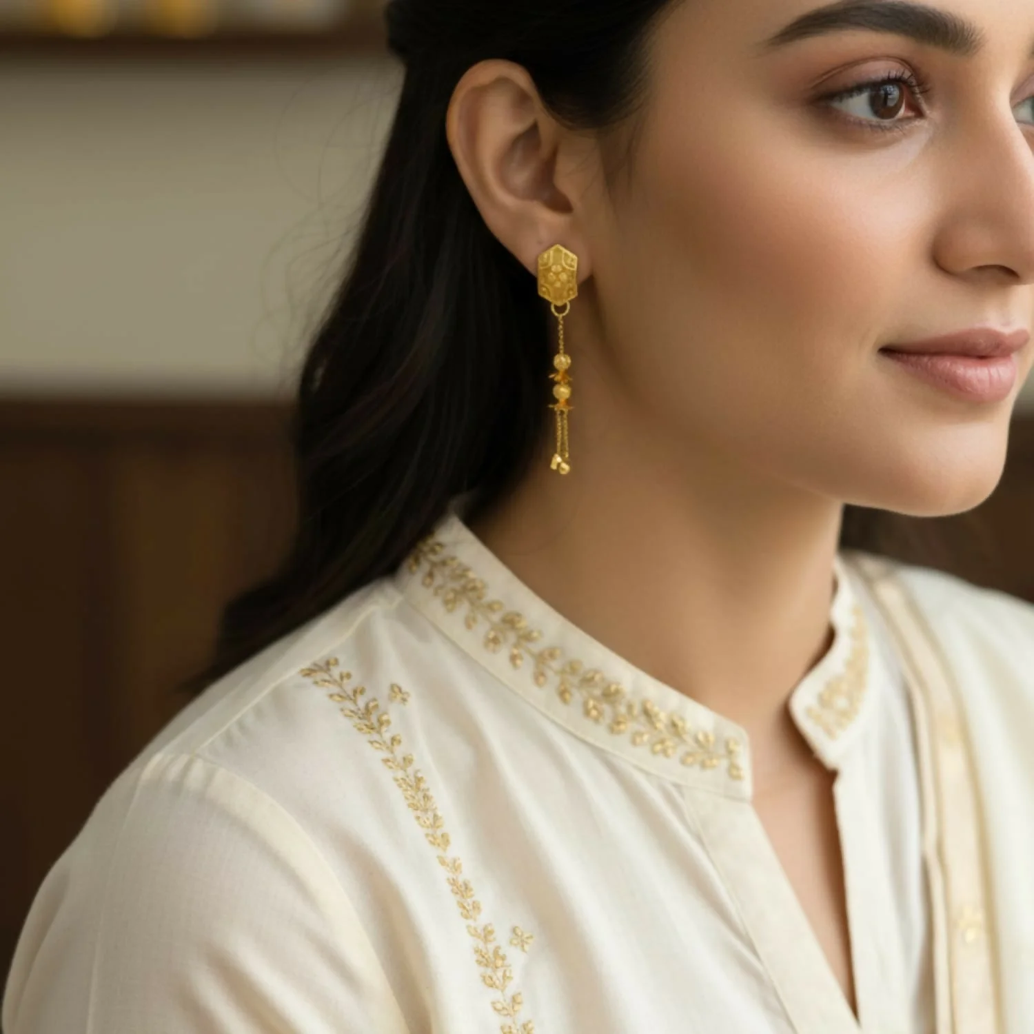 Be the first to review Long Chain Beads Golden Earrings for Women & Girls – Traditional Fancy Jewellery Gift!