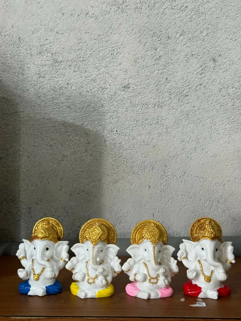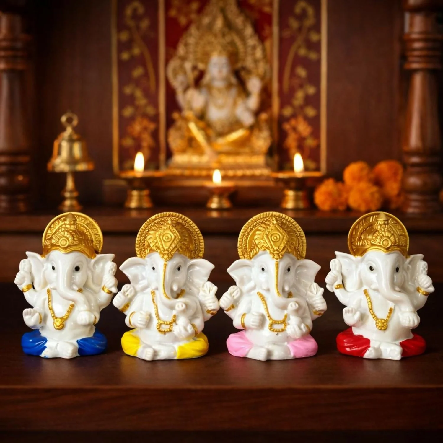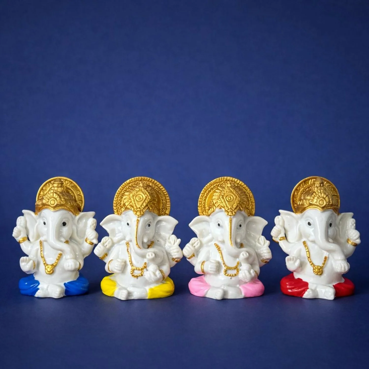 Set of 4 Ganpati Idols – Multiple color bases for decorative variety
