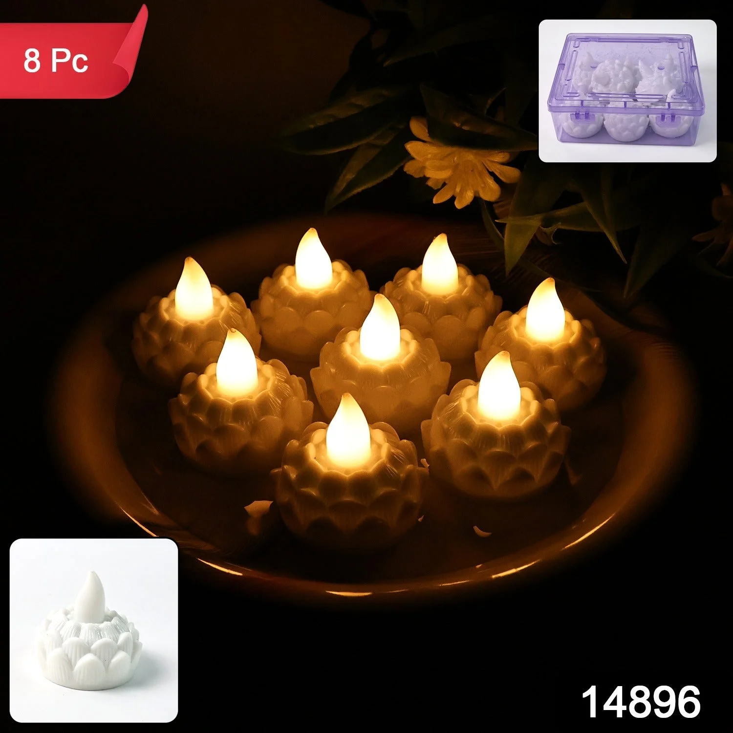 Lotus Shaped LED Flameless Tealight Candles – Battery Operated Decorative Lights for Home, Festival, Puja & Party Decoration – Warm White Glow – 8 Pcs Set