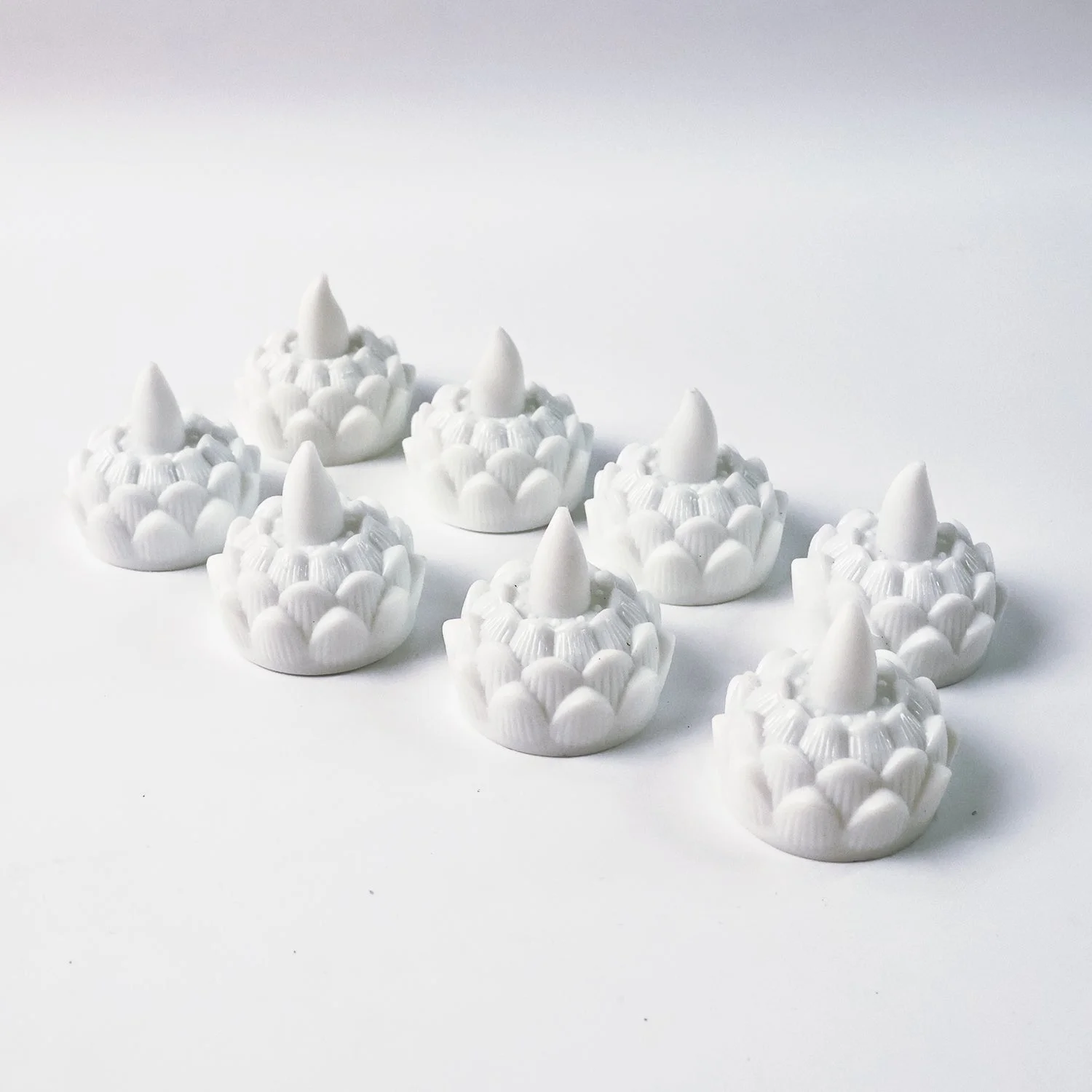 Create a warm and serene atmosphere with these beautiful Lotus Shaped LED Flameless Tealight Candles. Designed with intricate lotus petal detailing and a realistic flame effect, these battery-operated candles provide the perfect blend of safety and elegance. The warm white glow makes them ideal for home décor, festivals, puja rituals, weddings, romantic dinners, and party decoration. Unlike traditional candles, these LED tealights are smokeless, flameless, and reusable, ensuring a safe environment, especially around children and pets. Packaged in a convenient set of 8, these decorative lights are perfect for enhancing both everyday ambiance and special festive occasions.