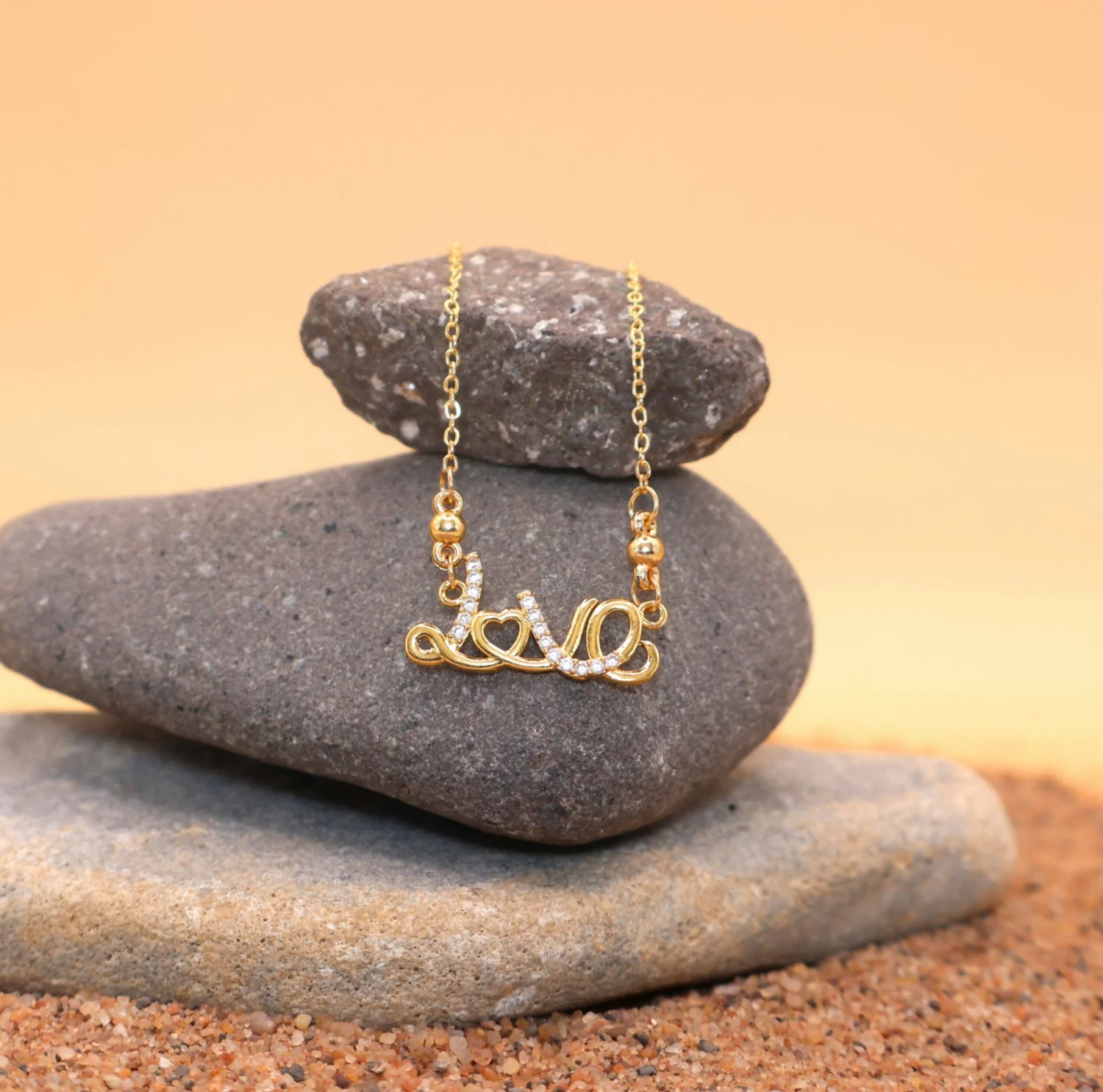 Celebrate romance and style with this elegant and delicate "Love" script necklace. Featuring a beautifully crafted pendant where the letter 'O' is replaced with a charming heart, this piece is an ideal gift or a sophisticated addition to your own jewelry collection.