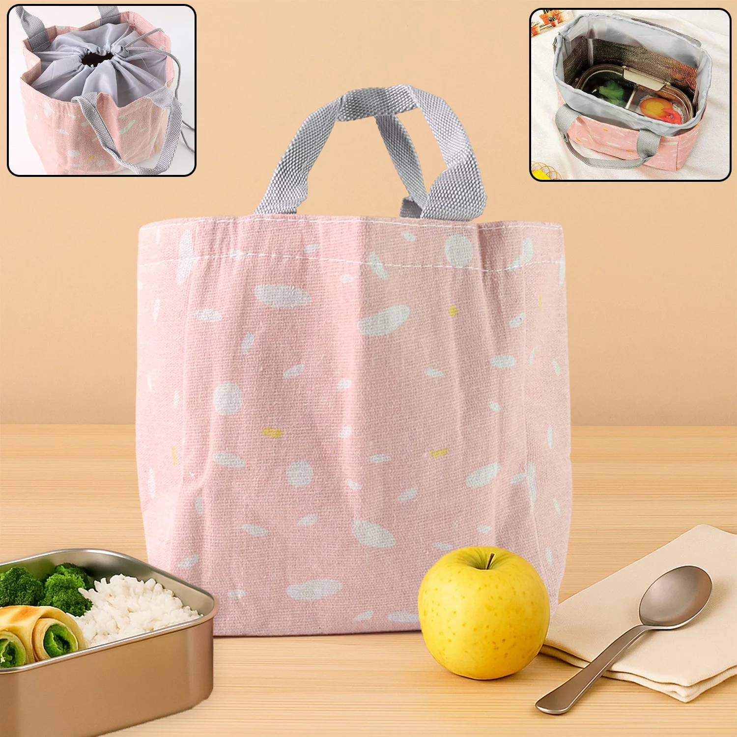 Lunch Bag for Women Men Insulated Lunch Bag With Handles Lunch Bag for Office Work Picnic Beach or Travel (1 Pc / Mix Color & Design)