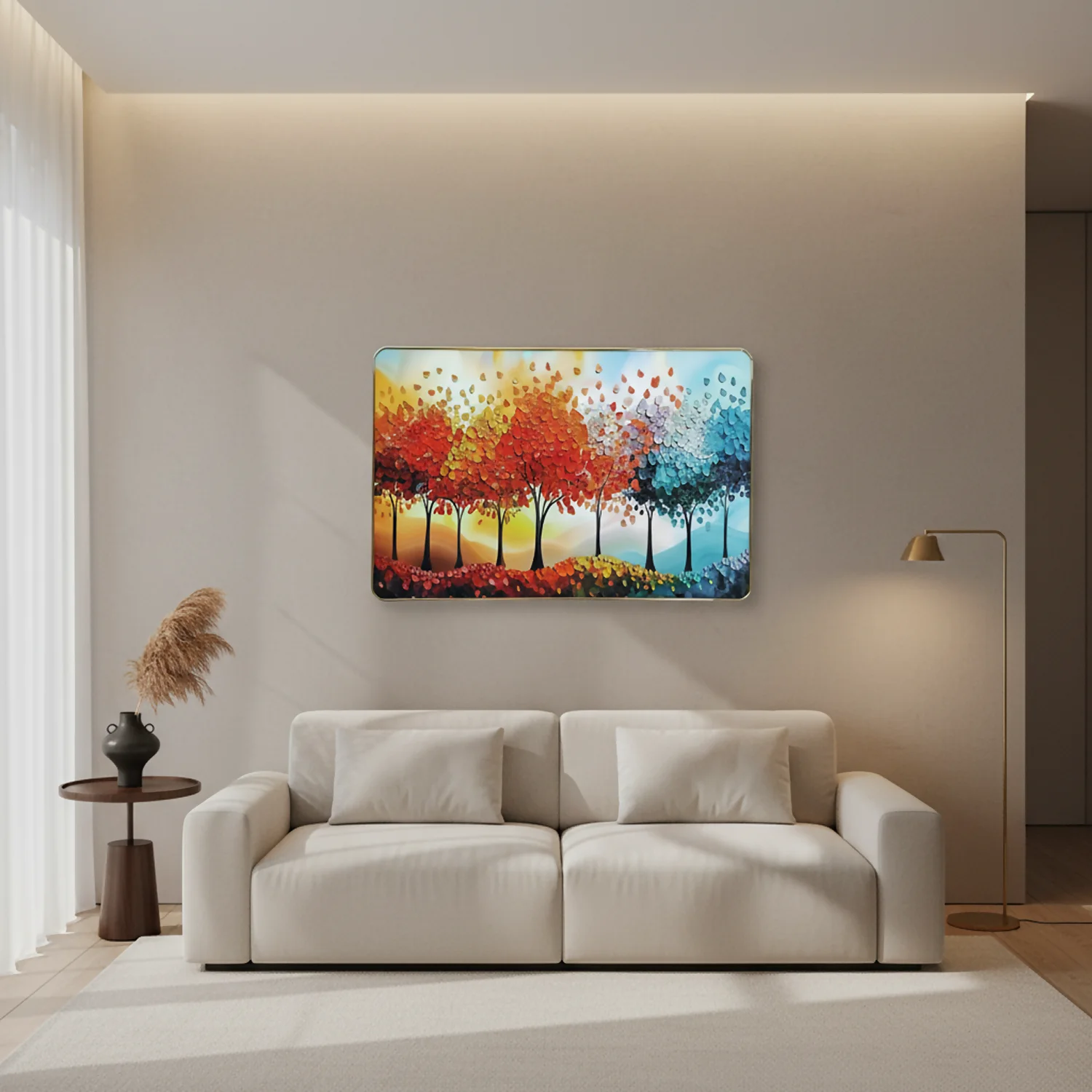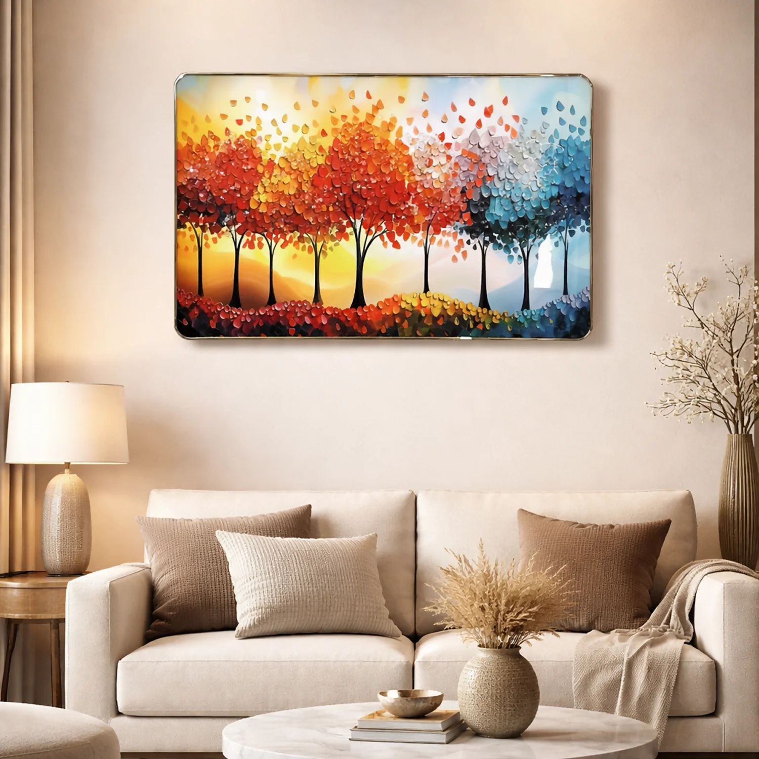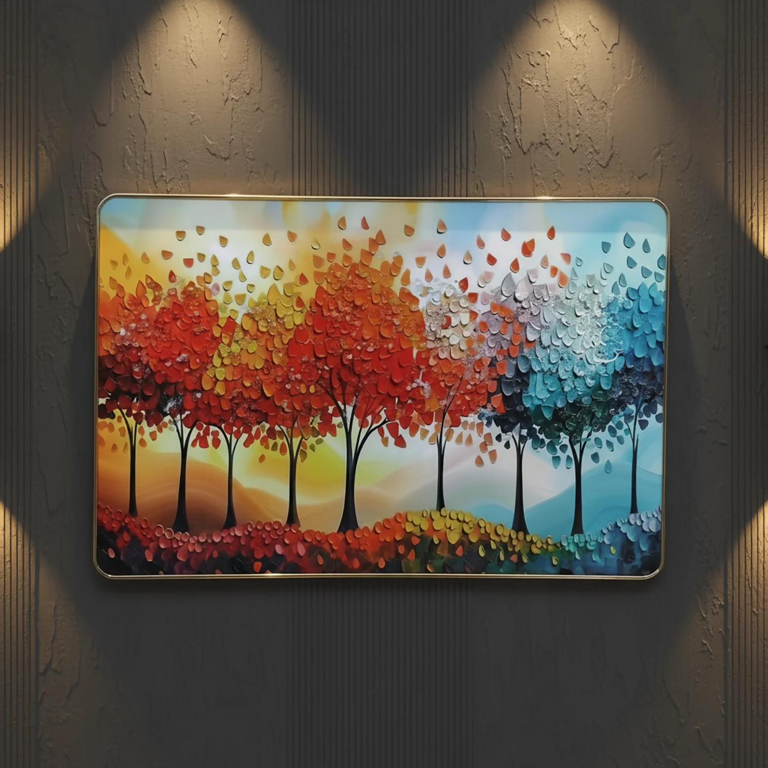 Add a vibrant and artistic touch to your home with this premium 3D tree wall art panel, designed to bring color, depth, and elegance into any space. Featuring a stunning row of abstract trees in a beautiful gradient of warm reds, oranges, and cool blues, this artwork symbolizes harmony, balance, and nature’s beauty.