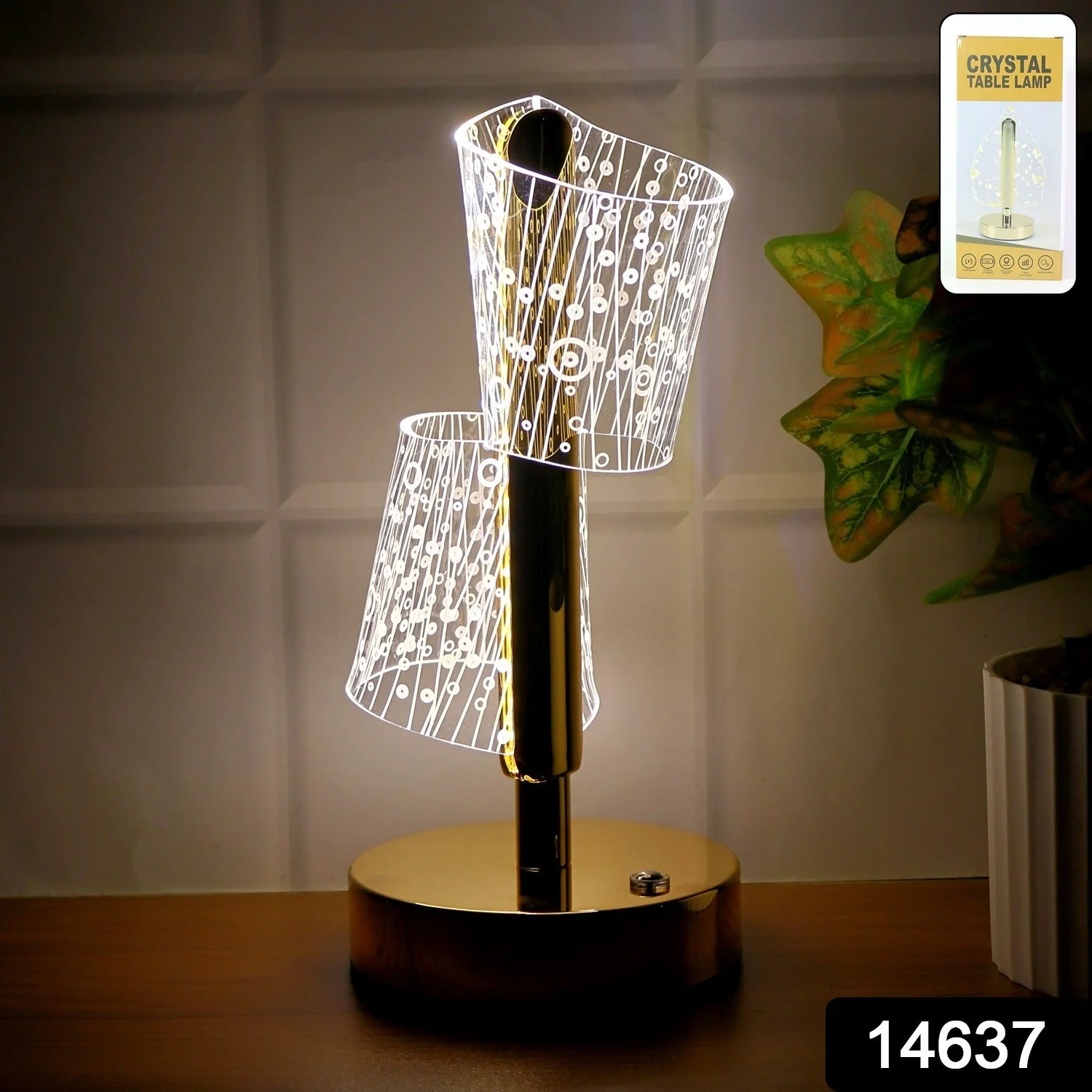 Elevate your space with this Crystal LED Double Shade Table Lamp, designed with a modern golden base and crystal-effect acrylic twin shades that create a sparkling ambiance. The dual shade design enhances the visual appeal, making it a stunning decorative piece for any room. Perfect for bedrooms, living rooms, offices, and festive occasions, this lamp offers both elegance and functionality. Its warm LED light provides a cozy and luxurious atmosphere, making it an excellent choice for home décor as well as gifting.