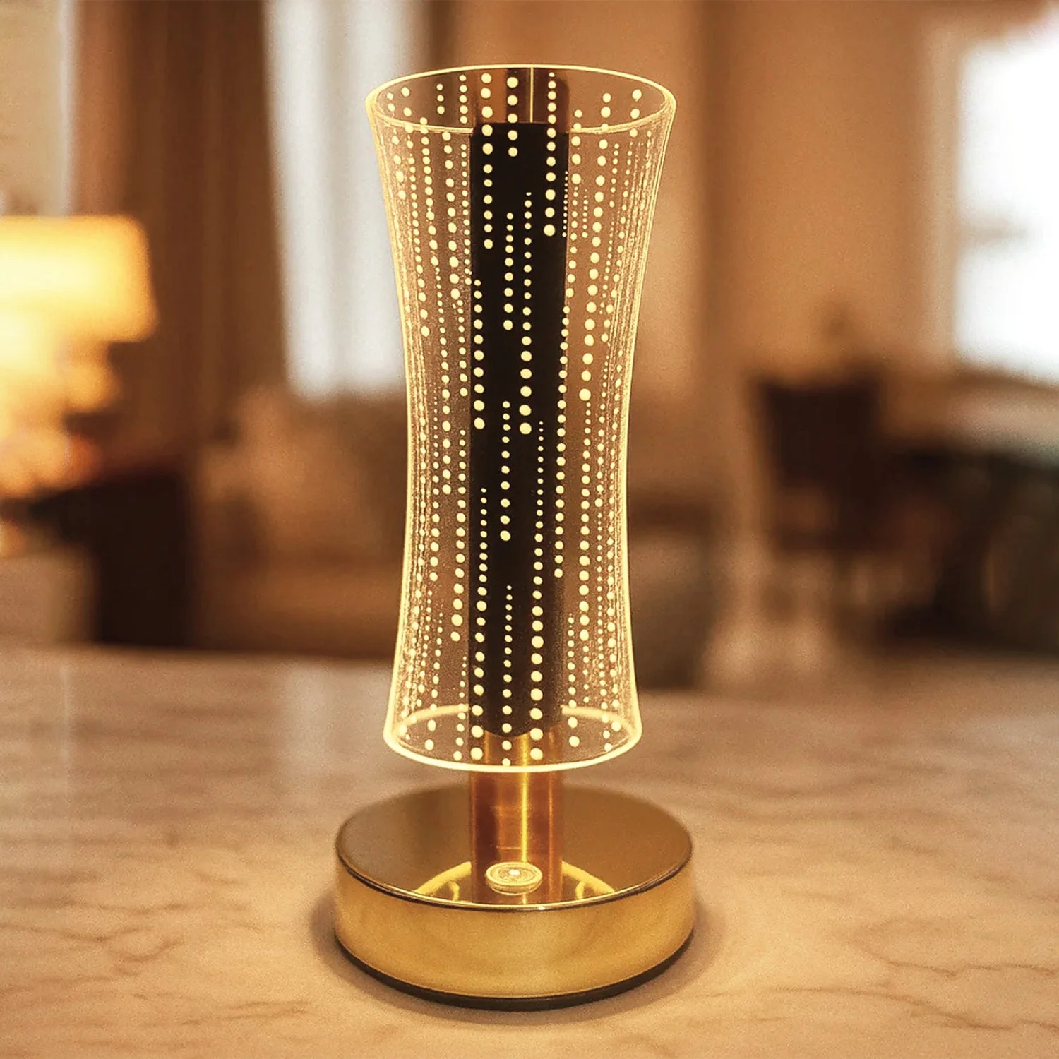 LED table lamp , crystal lamp , decorative lamp , night lamp , glowing lamp , mood light, home lighting , ambient light , luxury lamp , home decor , bedroom lamp , living room decor , cylindrical crystal lamp , patterned LED lamp , designer lamp , modern crystal LED lamp , artistic lamp , luxury crystal lamp