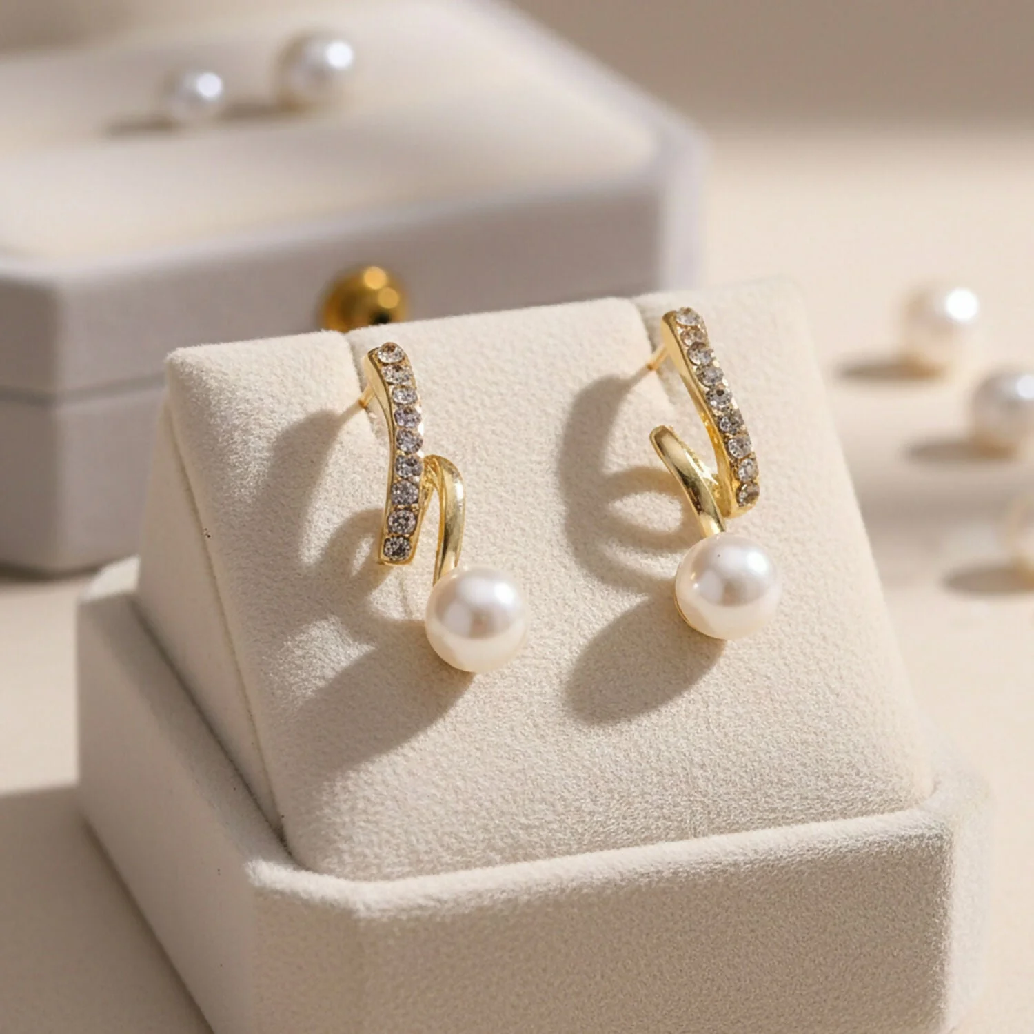 Crafted with attention to detail, the smooth gold polish and premium pearl finish give a luxurious appearance that instantly upgrades your overall style. Whether you're dressing up for a festive celebration, cocktail party, or a casual outing, these stylish earrings make a perfect fashion statement.