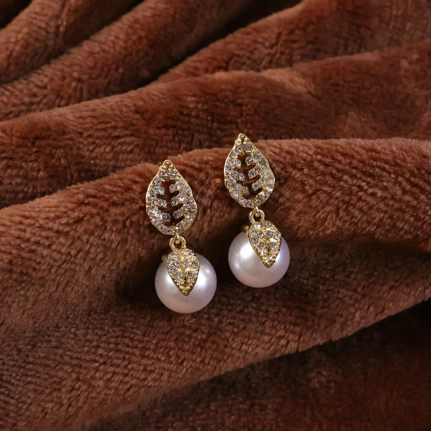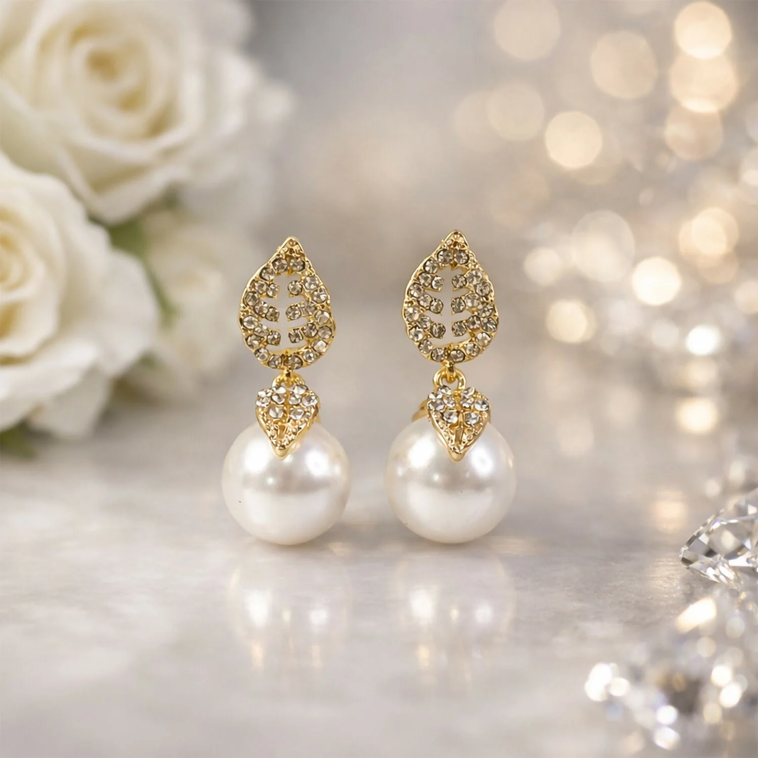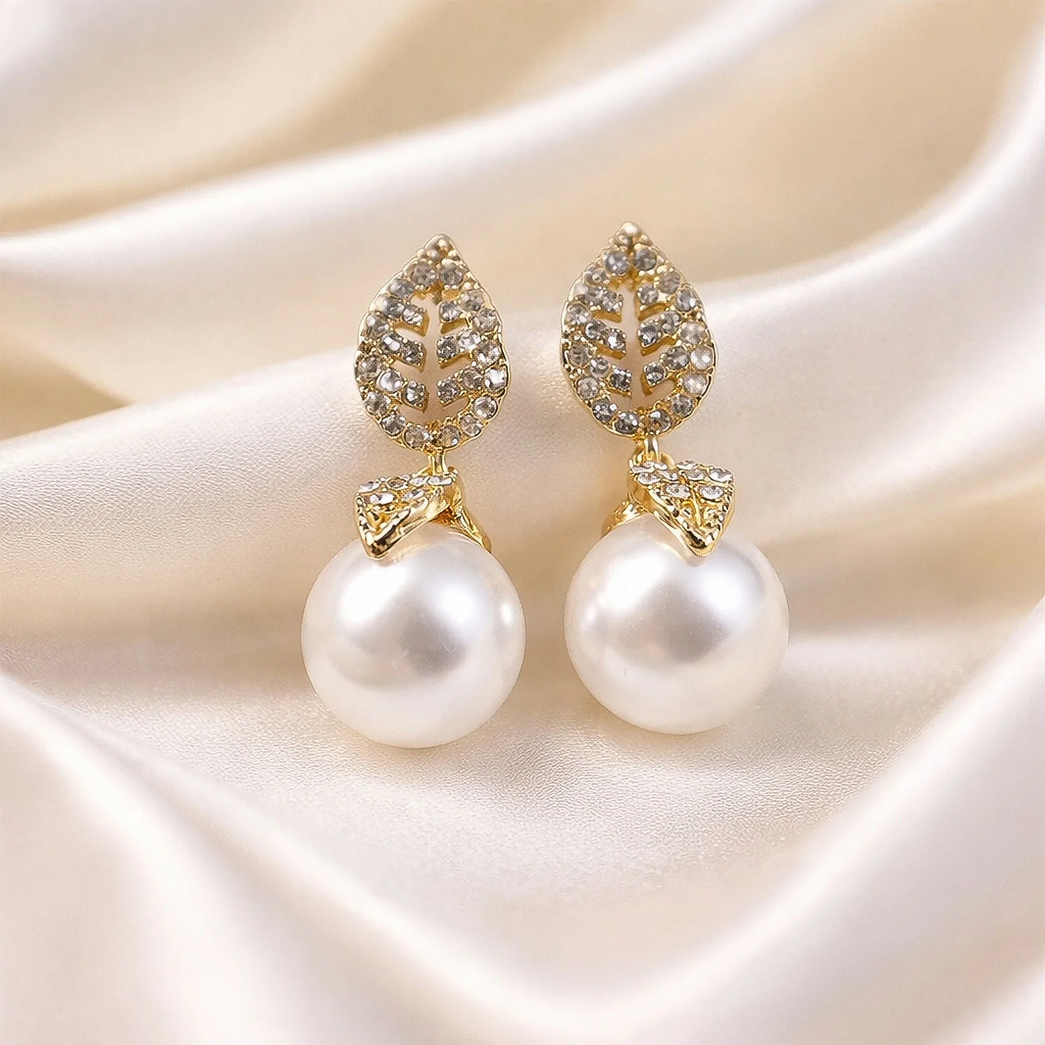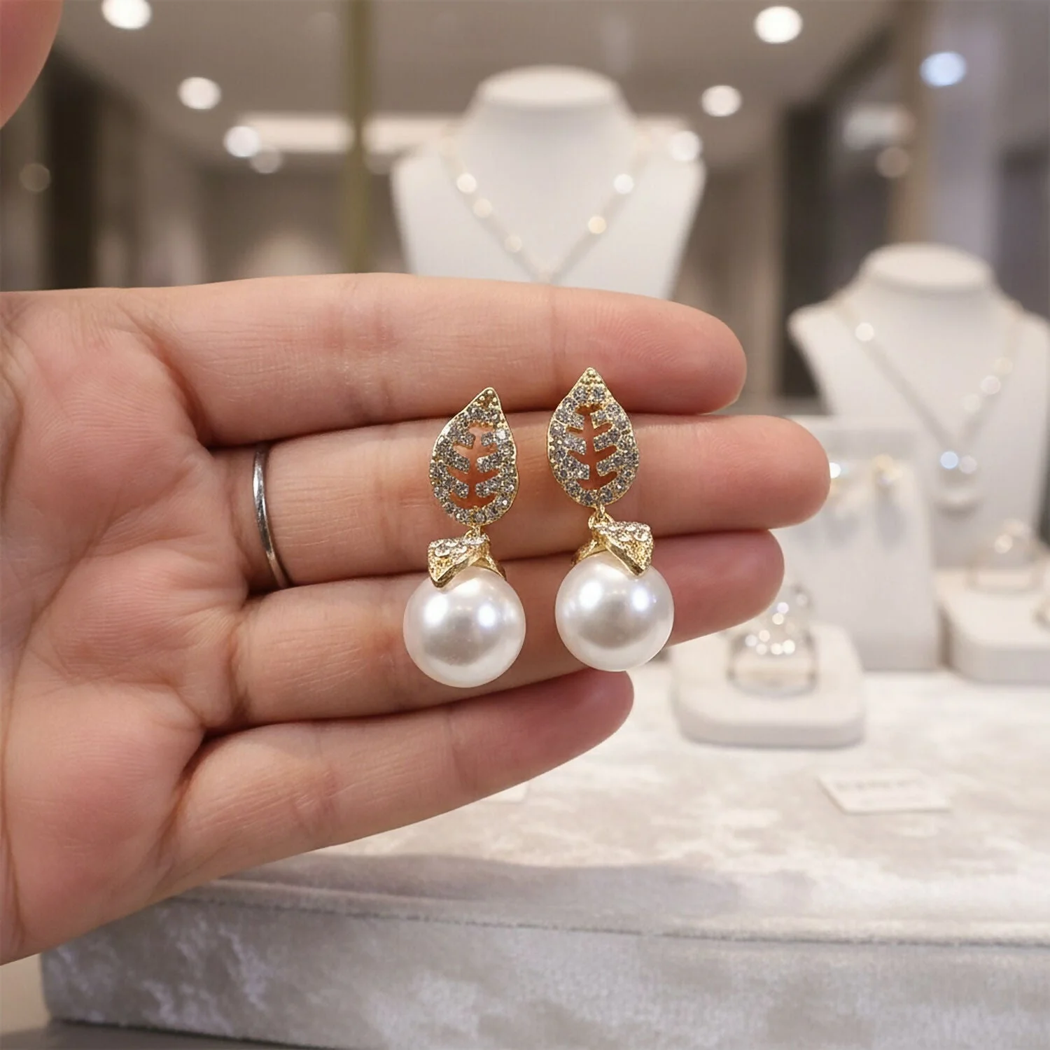 Be the first to review Luxury Korean Style Gold Leaf Pearl Drop Earrings for Women!
