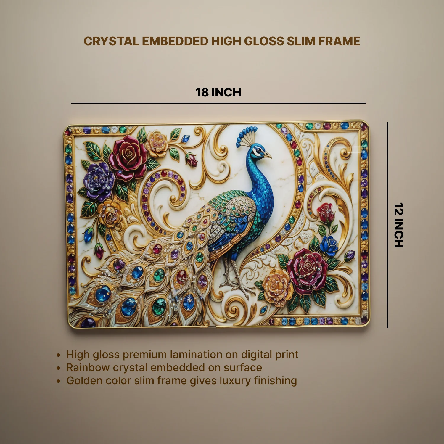 Be the first to review Luxury Peacock Wall Art Frame with Floral Gem Design Home Decor!