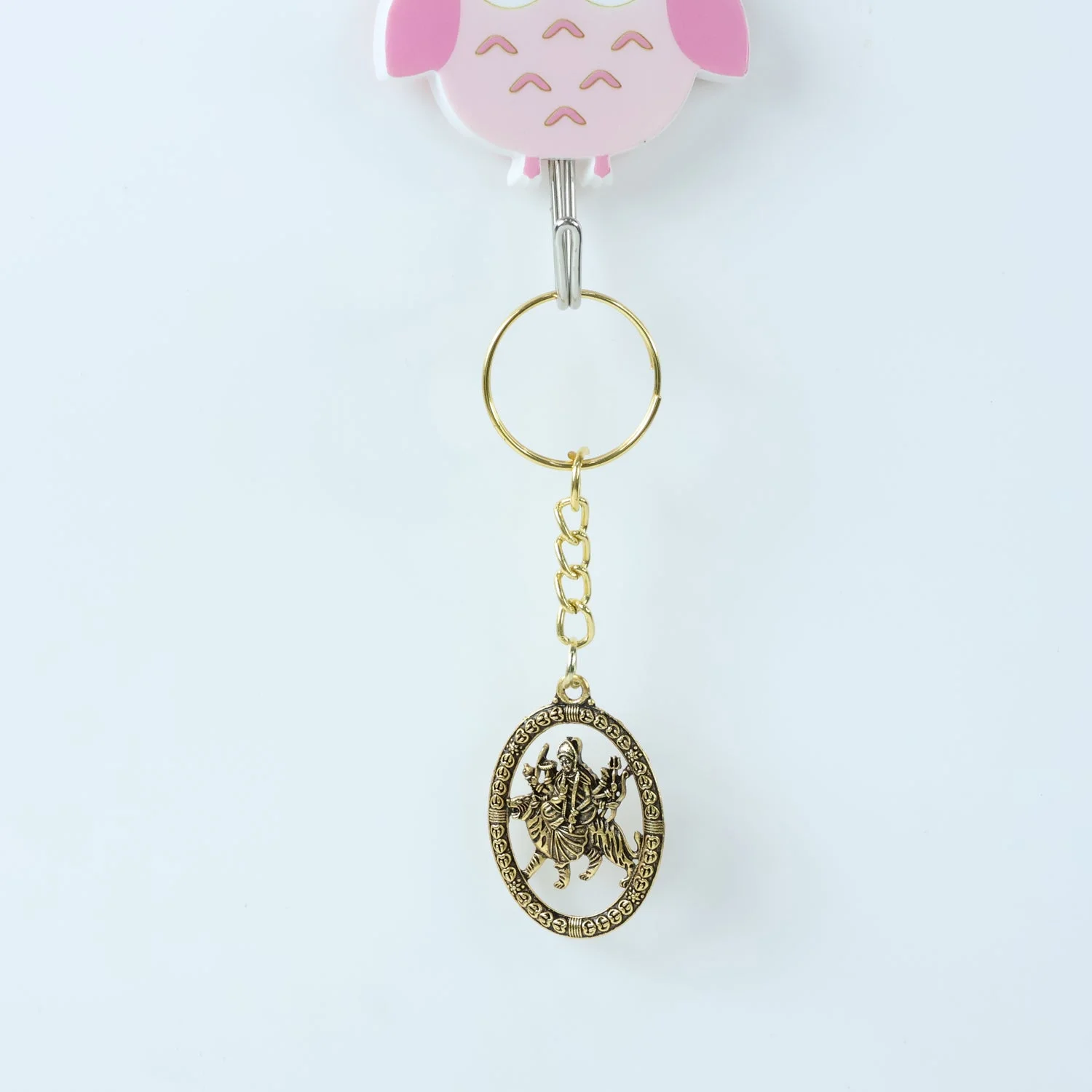 Maa Durga keychain , Durga idol keychain , golden keychain , oval frame keychain , Hindu goddess keychain , religious gift , spiritual keychain , goddess Durga keyring , decorative keychain , Indian keychain , festival gift , Durga Puja gift , traditional keychain , metal keychain