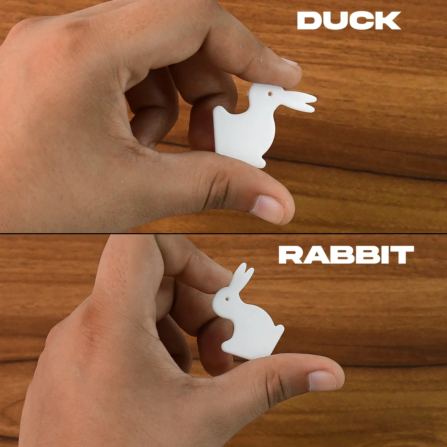 Unique dual illusion toy – can be seen as a rabbit or a duck.
