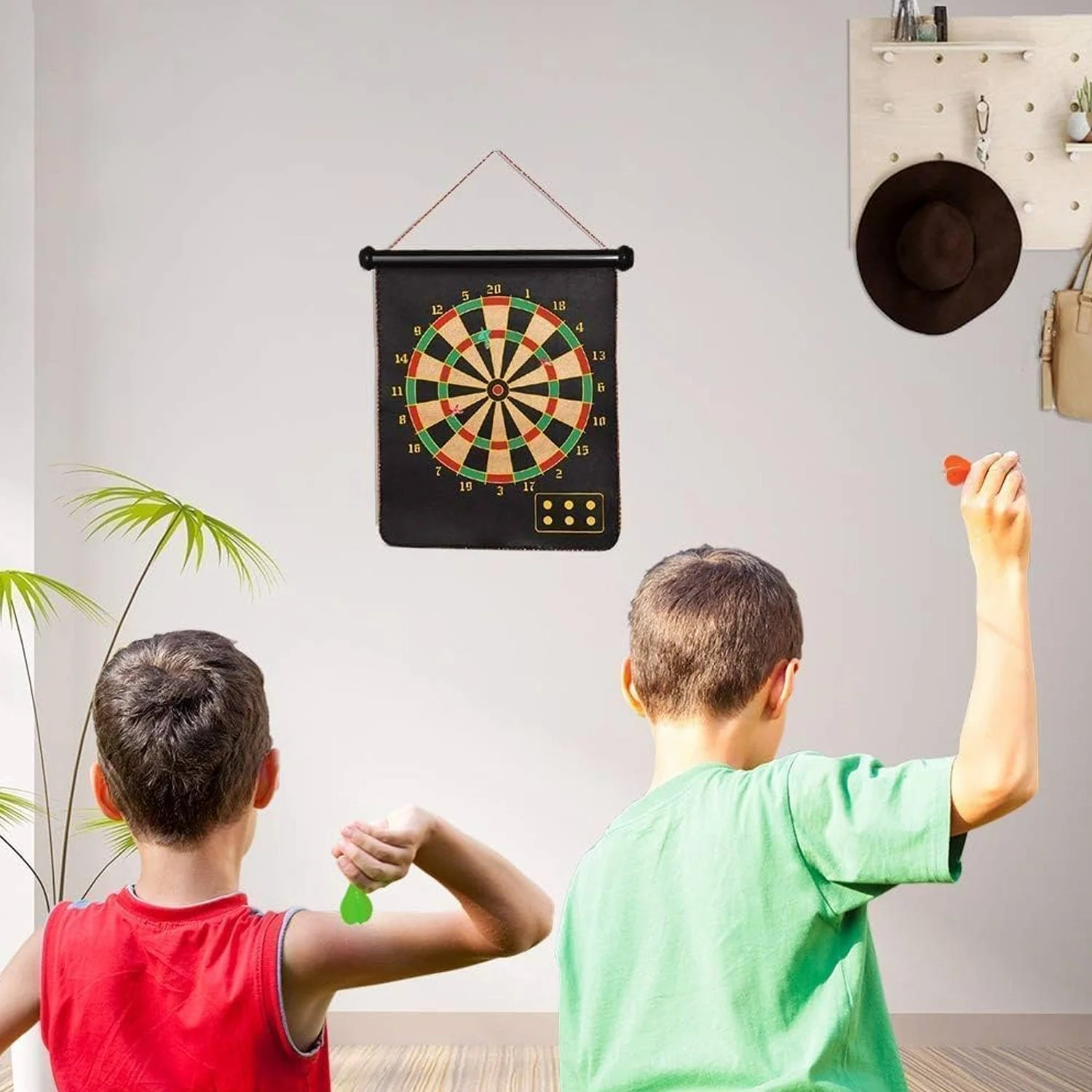 With a double-sided design and easy roll-up storage, it’s perfect for hanging anywhere—bedrooms, living rooms, classrooms, or offices. The bright scoring pattern makes it visually engaging, improving hand-eye coordination, focus, and precision. Great for family game nights, stress relief, or friendly competitions!