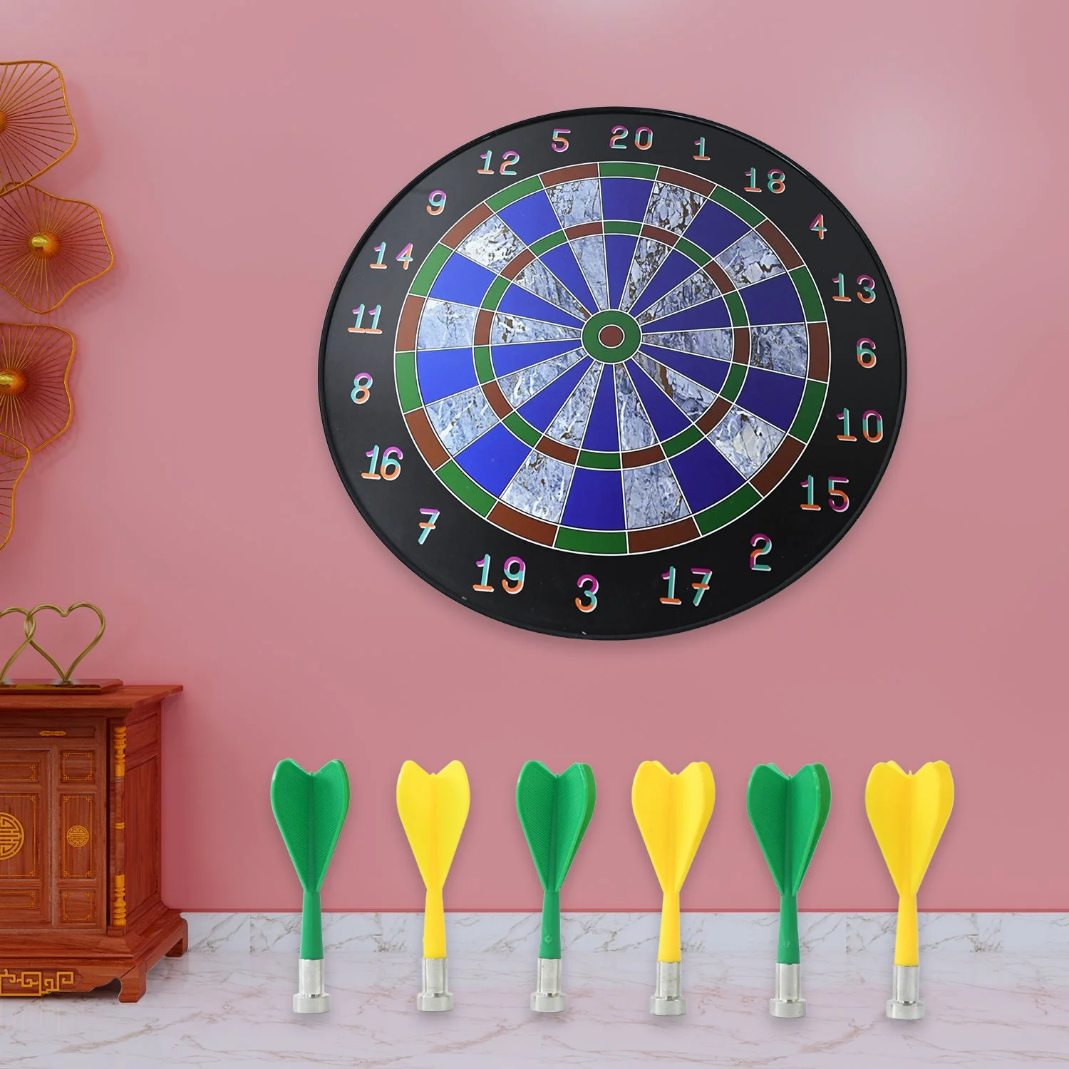 Safe Magnetic Design: Includes 6 soft-tip magnetic darts (3 yellow, 3 green) that firmly stick to the board without damaging walls or posing injury risks – making it ideal for children and indoor use.