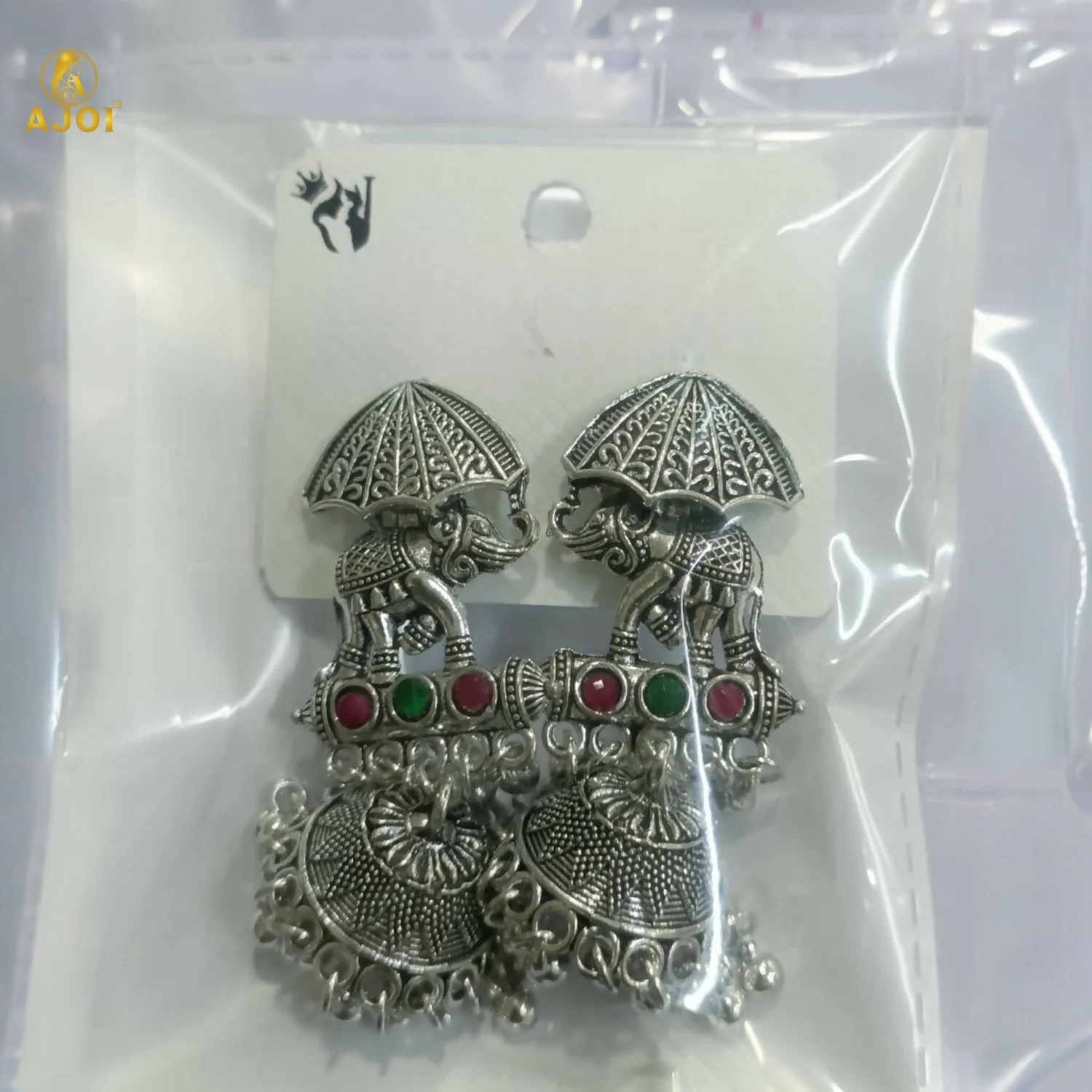 Be the first to review Maharaja Elephant Motif Oxidized Silver Jhumka Earrings!