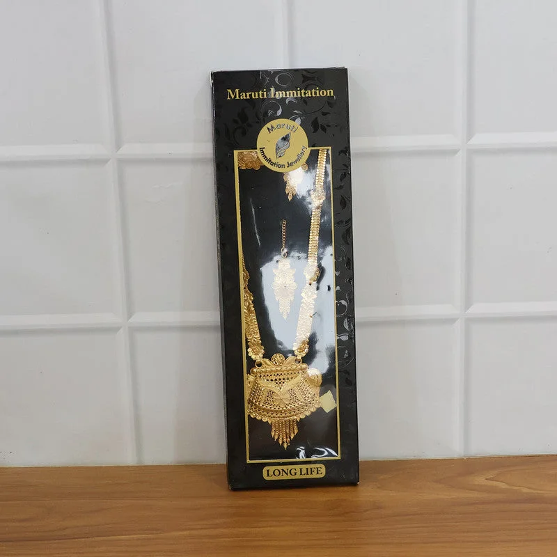 Be the first to review Majestic Gold-Finish Long Necklace Set with Intricate Traditional Craftwork!