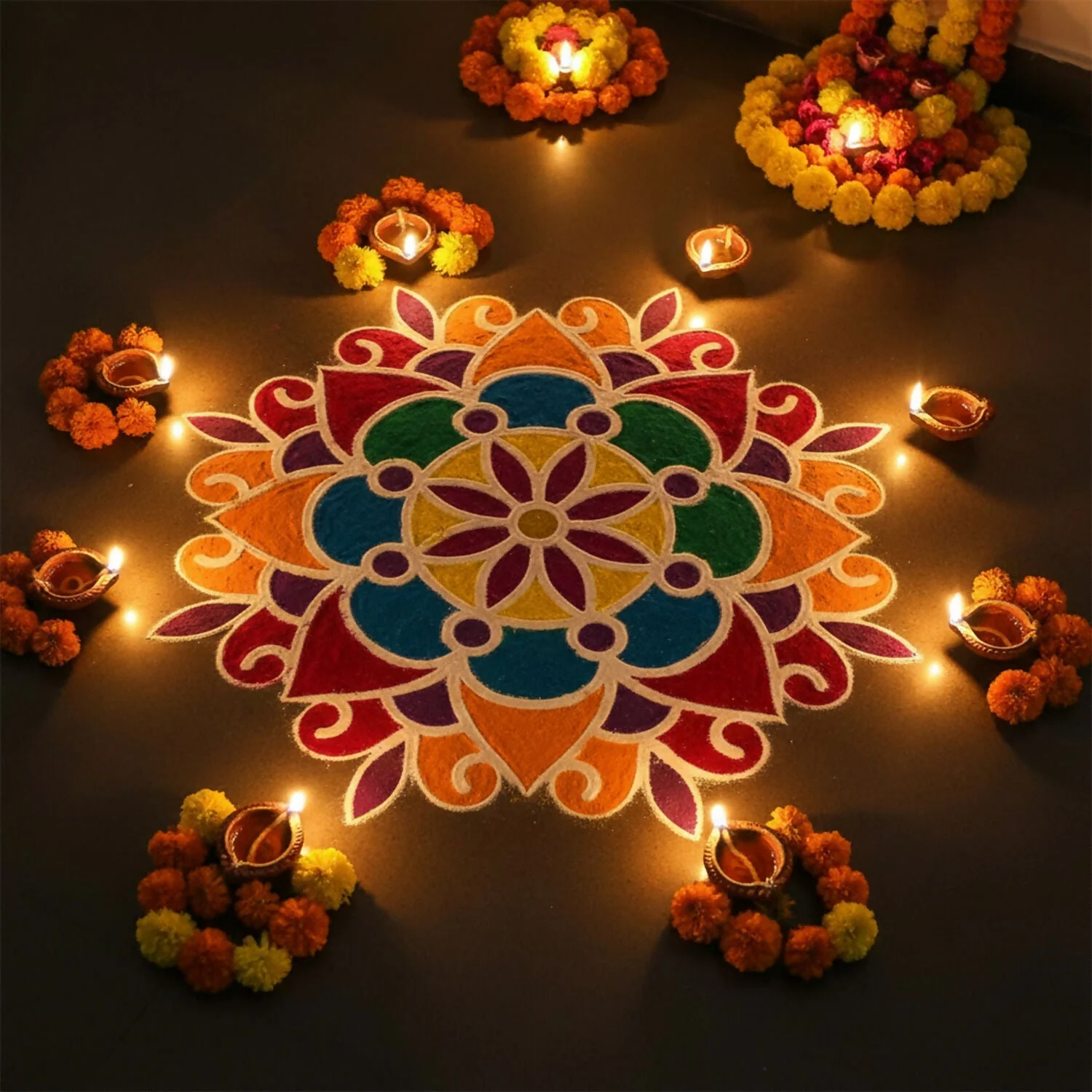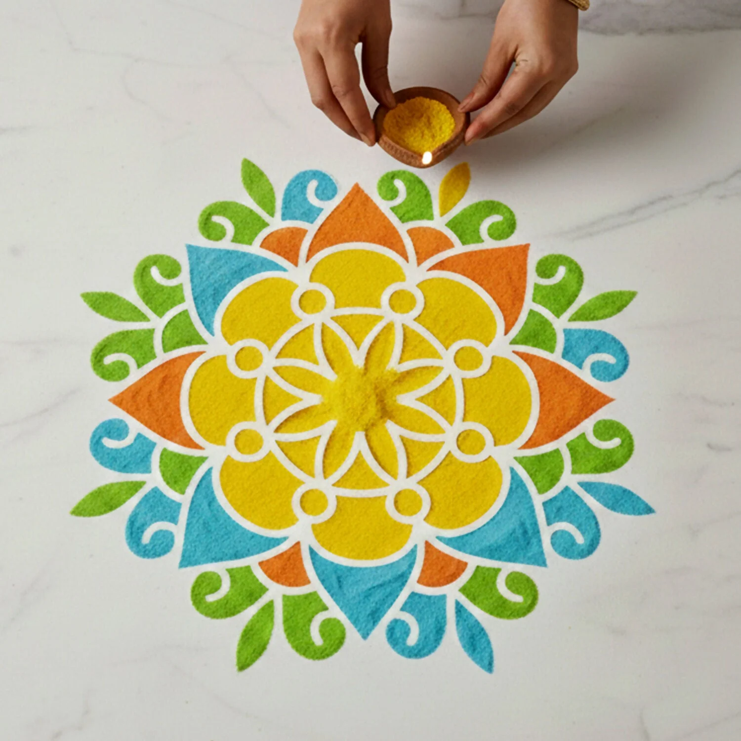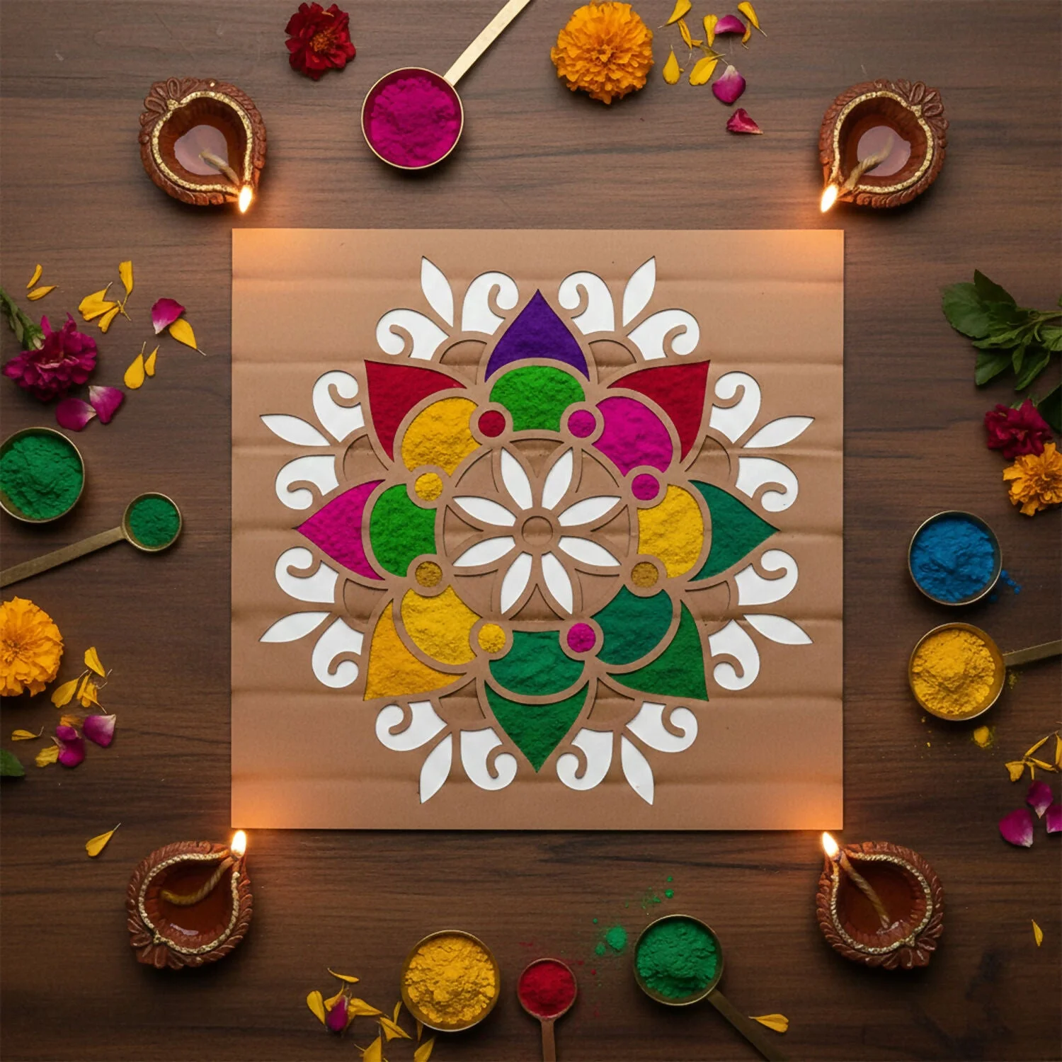 Get a full, festive look without spending too much time. Place it, add colours, lift it — the design comes out neat and balanced. Perfect for Diwali, pooja, and special days.