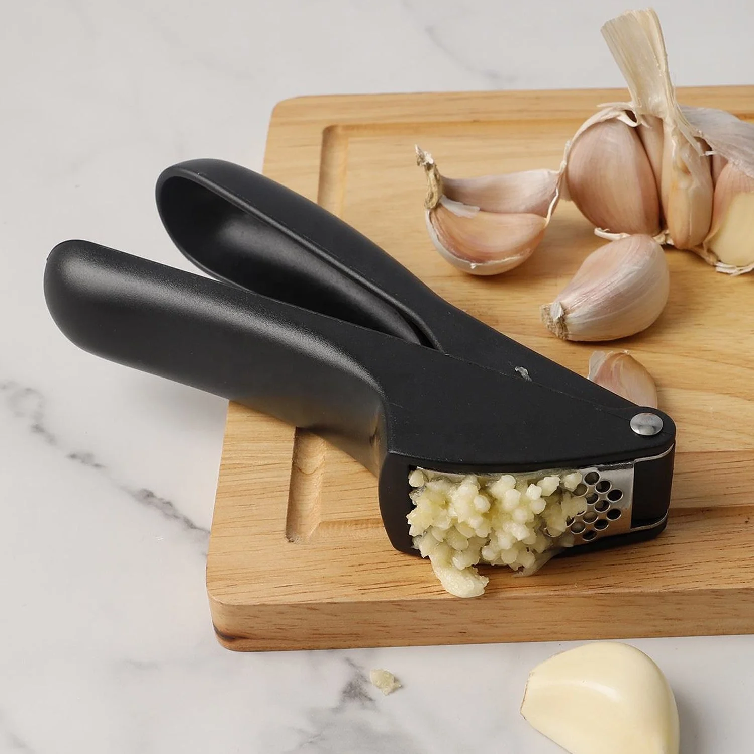 manual garlic press crusher, garlic mincer tool, easy squeeze garlic press, kitchen garlic crusher, handheld garlic mincer, garlic crushing tool, garlic chopping press, cooking prep garlic tool, stainless steel garlic press, ergonomic garlic crusher, manual kitchen mincer, garlic paste maker, home kitchen garlic press, easy use garlic press