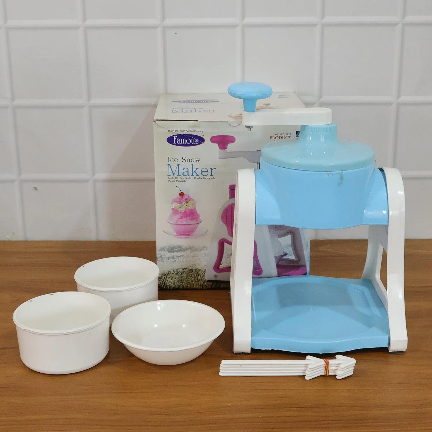 This device is the most hygienic way to prepare Ice golas / ice slush. The product is very easy to assemble, easy to use and easy to clean. Once not in use this can be disassembled and stored in a box or kitchen cupboard due to its light weight and compact design.