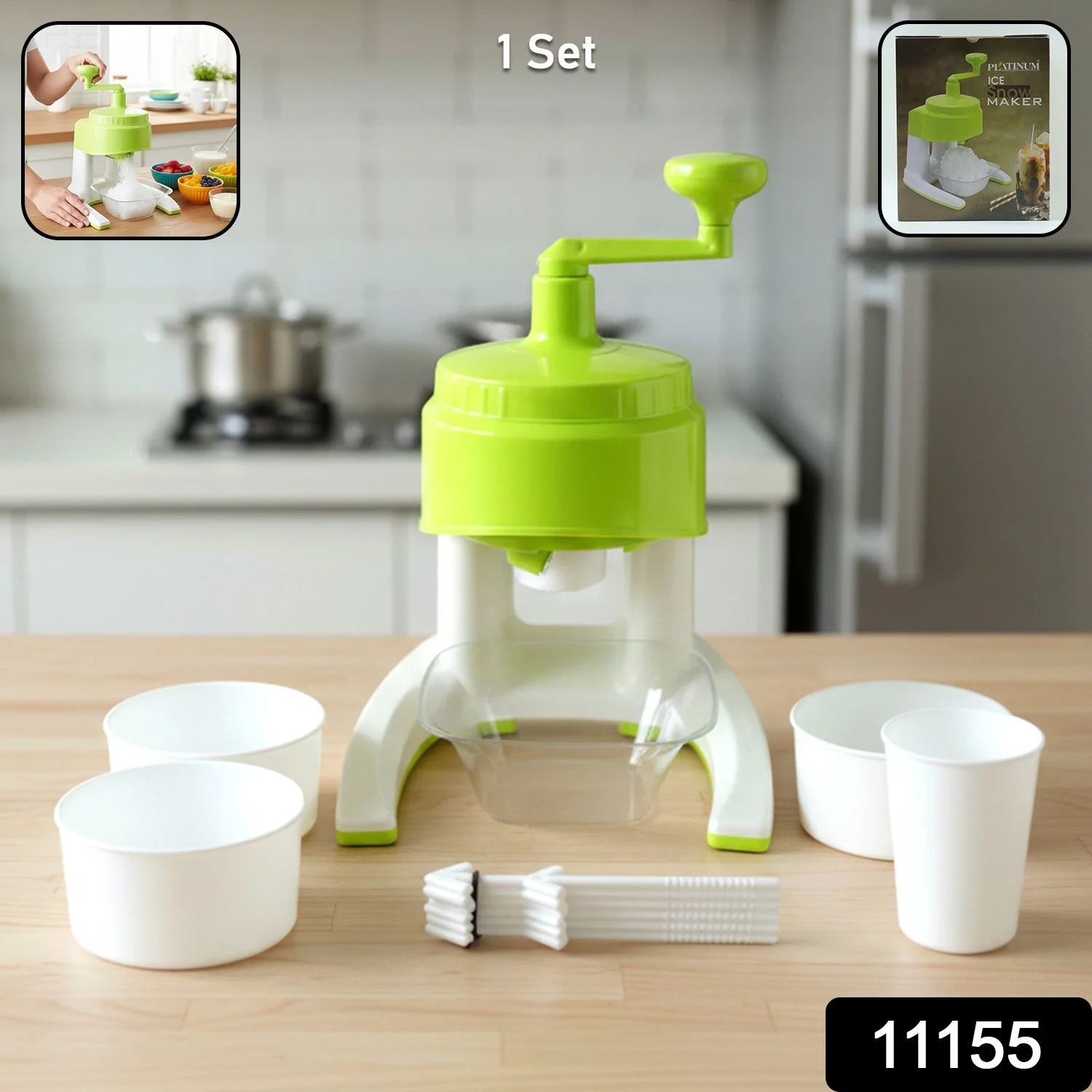 Set Includes: Ice Crusher Machine with Bowls & Cups