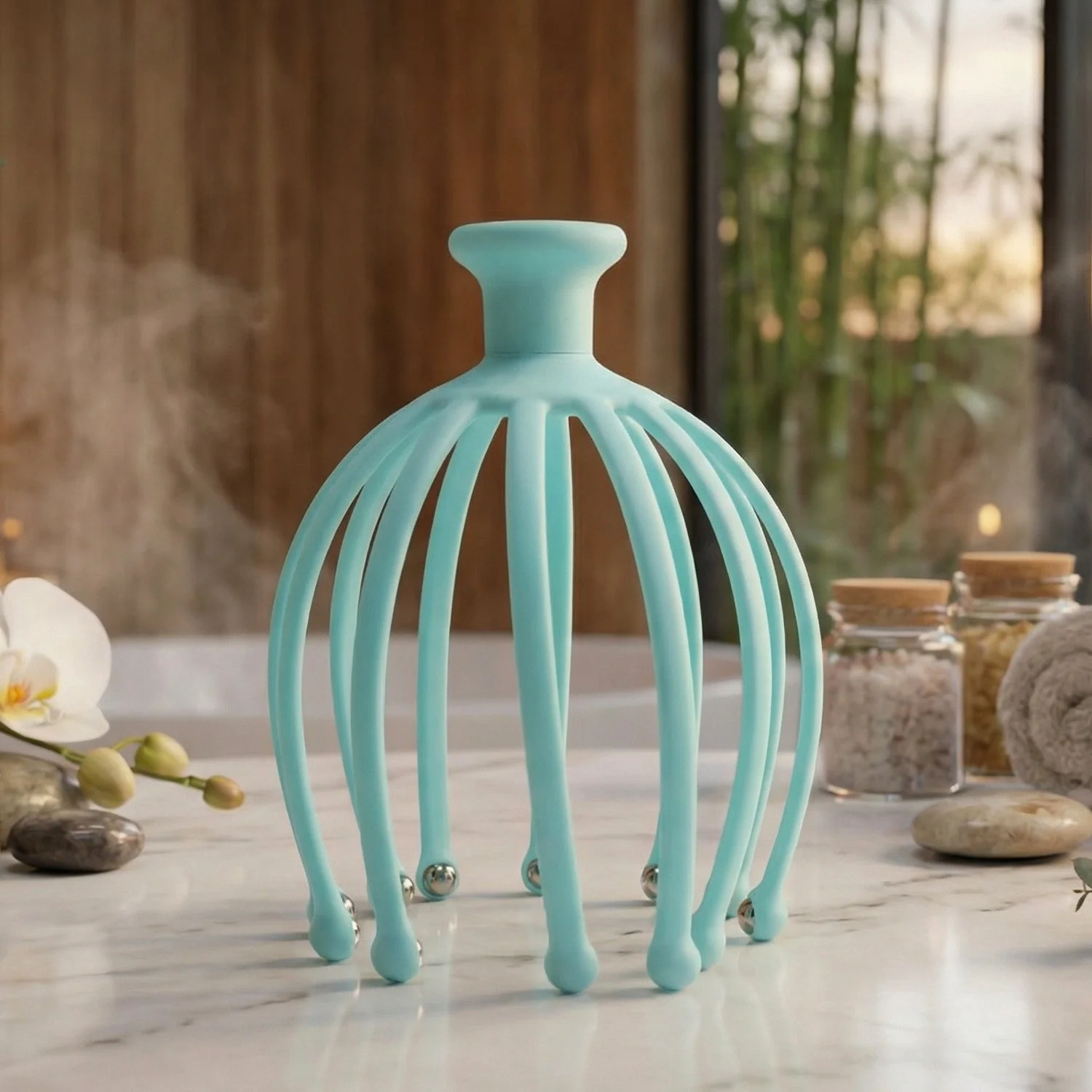 premium manual head scalp massager , soft flexible leg scalp massager , metal roller tip head massager, stress relief head massage tool, scalp massage tool for women , spa head massage accessory, hair care scalp massager , handheld scalp stimulator , portable scalp massage tool, metal tip scalp stimulator, soft touch scalp massager, hair growth stimulation massager , soothing head massage tool, wellness scalp massager, stress relief hair care tool, scalp massage roller