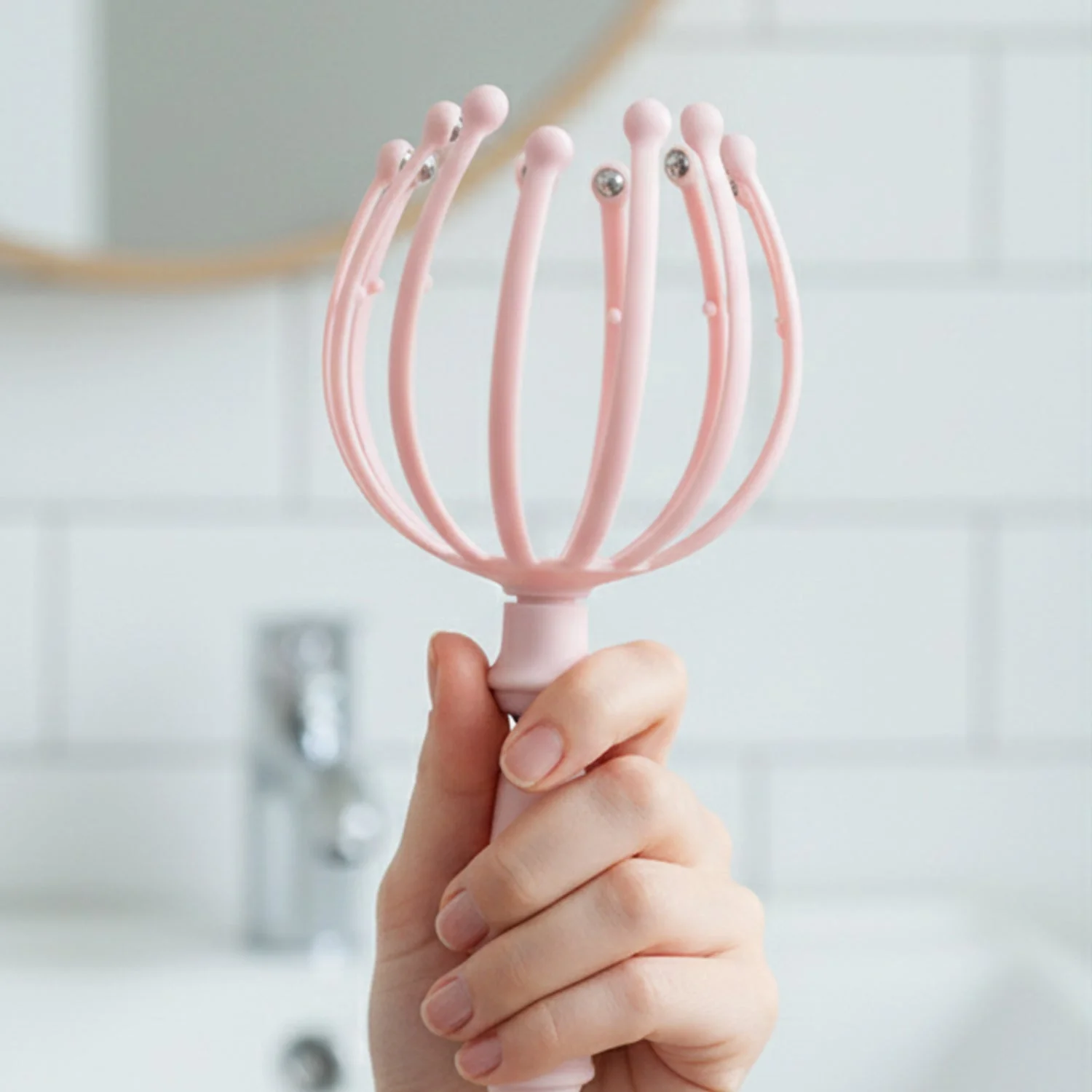 Experience soothing relaxation with this manual head scalp massager designed to gently stimulate your scalp and relieve stress. Featuring flexible prongs with smooth rolling ball tips, it glides comfortably over the head to provide a calming massage sensation. The ergonomic handle ensures easy grip and effortless use without requiring batteries or power. Ideal for daily relaxation routines, it helps promote a refreshed feeling after long work hours. Compact and lightweight, this massager is easy to carry and perfect for use at home, office or during travel.