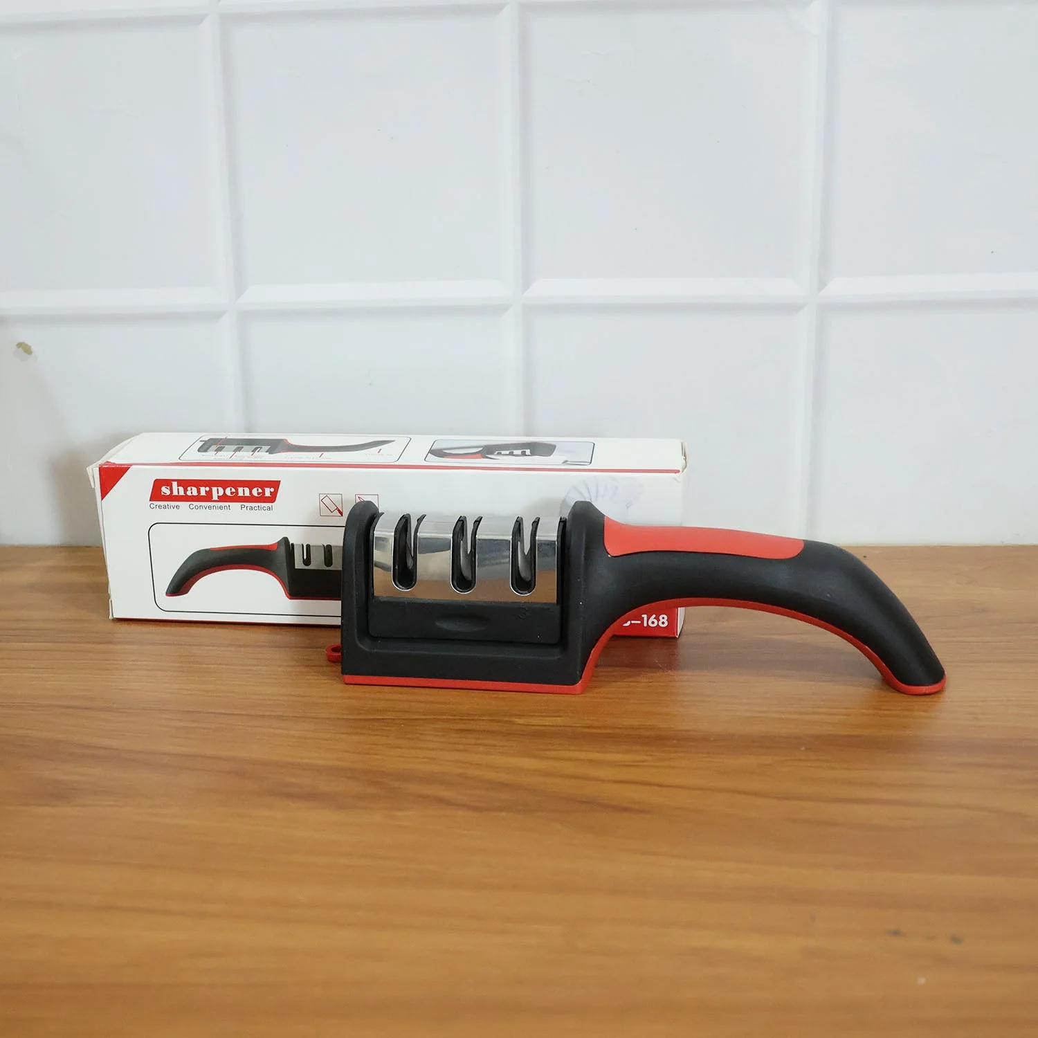 2051 Manual Red & Black Knife Sharpener 3 Stage Sharpening Tool for Ceramic Knife and Steel Knives