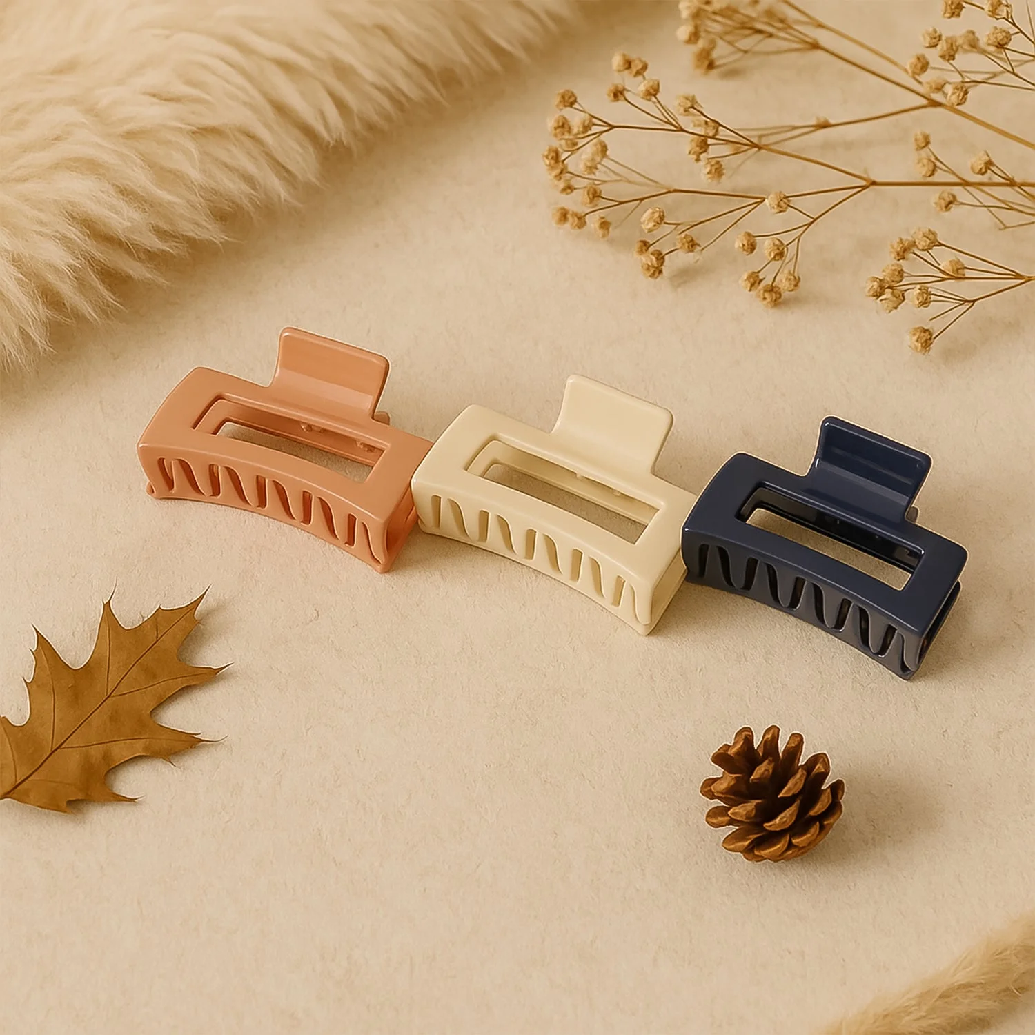 Elevate your everyday hairstyles with this stylish and durable matte finish hair claw clip. Crafted in a rectangular open-frame design, this clip provides a secure hold while adding a chic touch to your look. The assorted colors in the pack make it easy to match different outfits and moods, making it a practical accessory for home, office, or travel use.