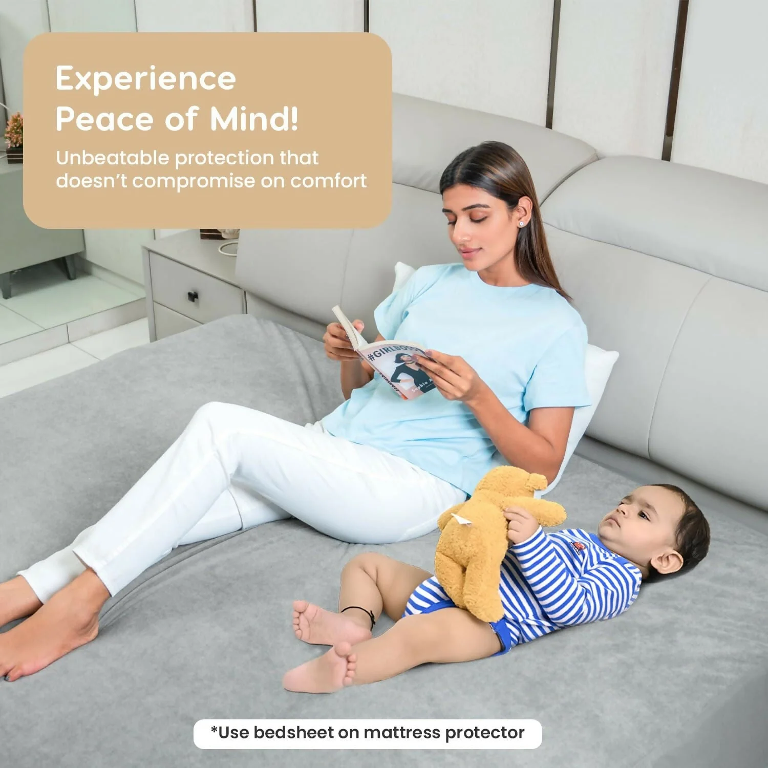 Protect your mattress with this premium waterproof mattress protector designed for comfort, durability, and everyday convenience. Featuring a 100% liquid-proof layer, it effectively safeguards your mattress from spills, stains, and moisture while maintaining a soft and breathable surface for a comfortable sleep experience. The top layer is made with a premium terry fabric that feels smooth and quiet, ensuring no disturbance while resting. Designed with all-around elastic edges, this mattress protector offers a snug and stretchable fit, making it easy to install and remove without slipping. It is machine washable for easy maintenance and long-lasting use. Ideal for homes with kids, pets, or daily use, this protector provides reliable protection without compromising on comfort. Available in multiple size options including 72x36, 72x60, 72x72, and 78x72, it fits a wide range of mattresses and ensures full coverage with a secure fit.