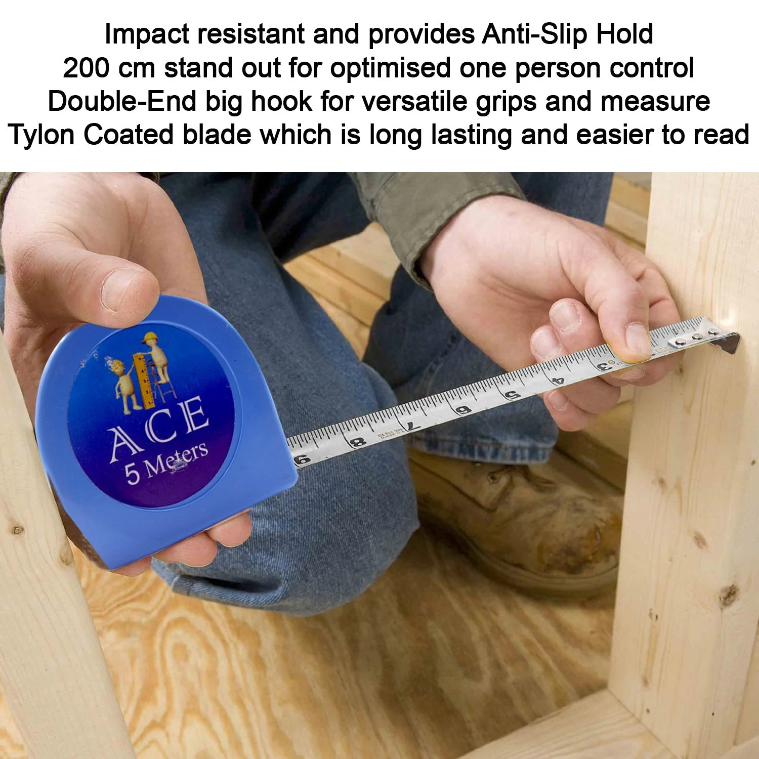 Steel Measuring Tape. Unbreakable ABS Case. Equipped With Lock. Measurement range 5m brand. With the sturdy belt clip, Strong comfortable wrist strap, you can carry the measuring tape in your pocket, or belt clip it on your belt, or use the strap to hold it on your wrist. The lock is very strong, and the raised thumb catch makes locking it a natural movement-just push the button to retract the blade firmly and safely, which ensures the convenience and flexibility of your measurement application.