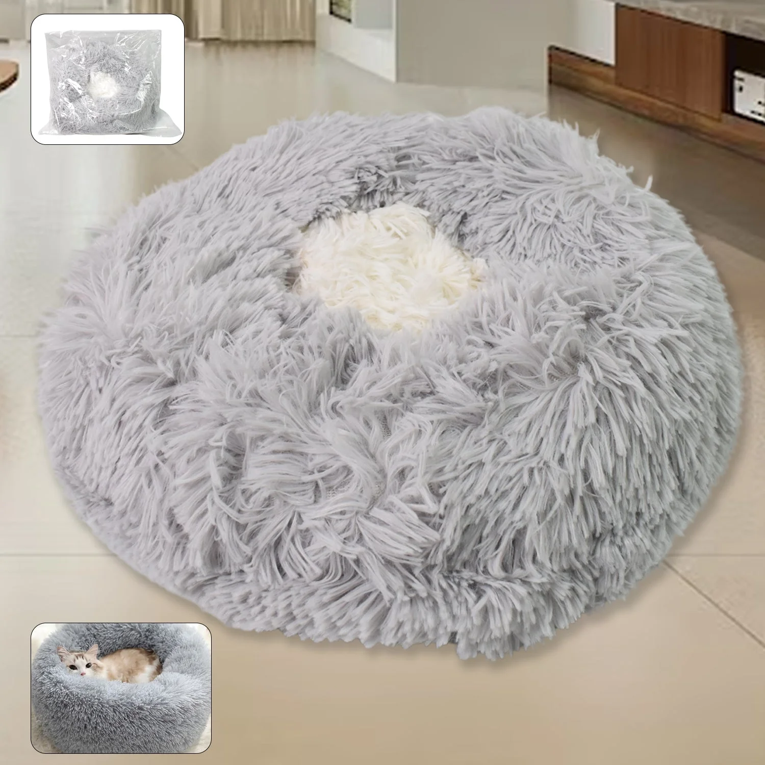 - dog bed is larger than the donut-shape bottom, for instance, our small cat bed has a diameter., the perfect gift for pets who like to hide or burrow.