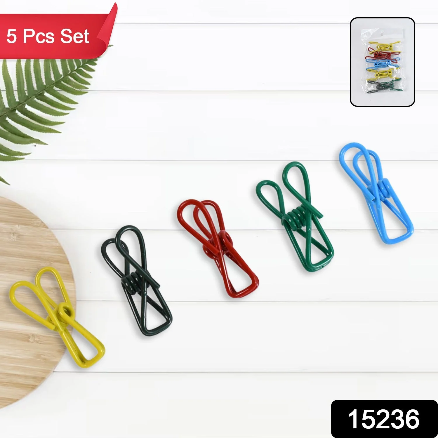 Metal Clothes pins Clips Multi-Function Coloured Utility Steel Wire Clips Pegs Holders in Basket Bin for Clothes Line Kitchen Bag Sealing, Metal Clothes Pegs, Clothing Clips, Laundry Pins (5 Pcs Set)