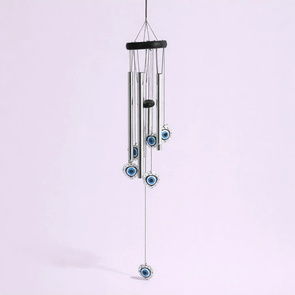 Add elegance and positive charm to your space with this beautifully designed metal evil eye wind chime. Crafted with hanging metal tubes and decorative eye charms, it produces soft, calming sounds when touched by a gentle breeze while enhancing the visual appeal of your surroundings.