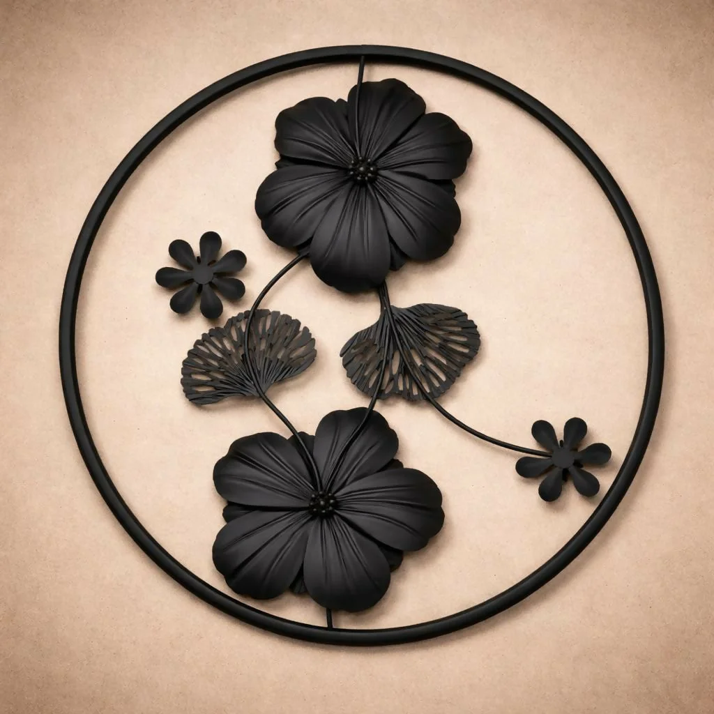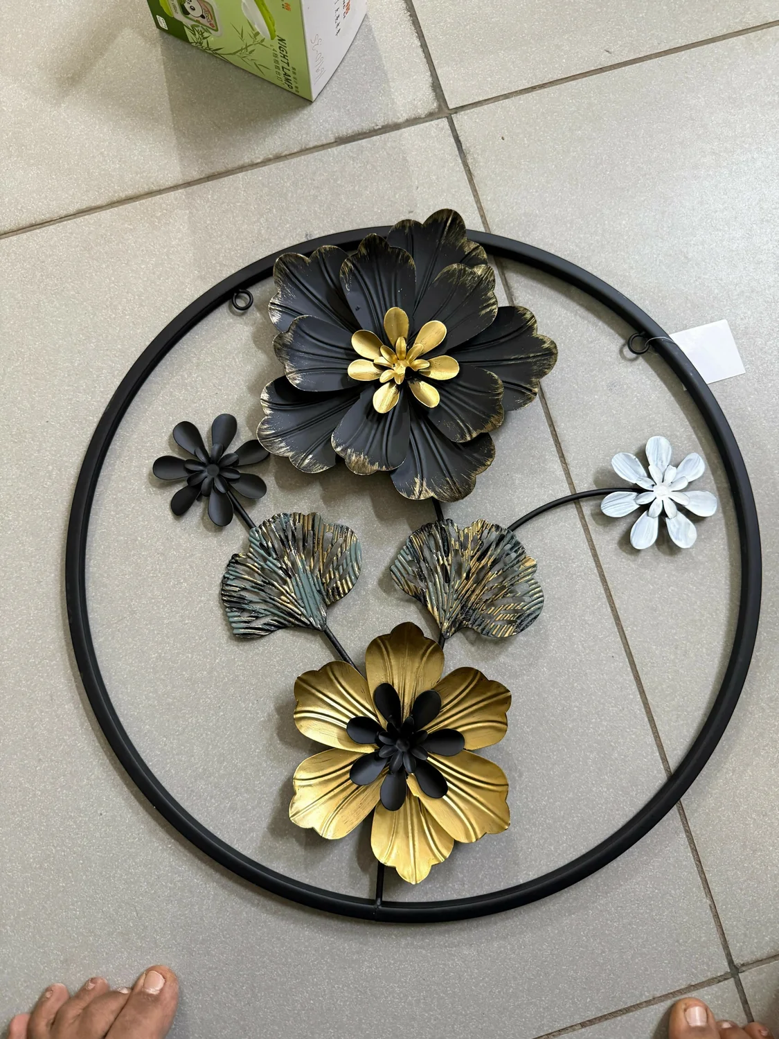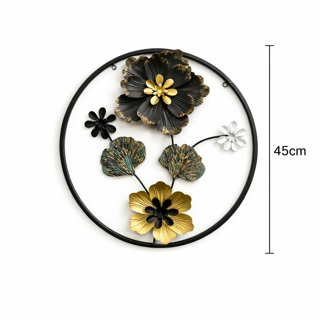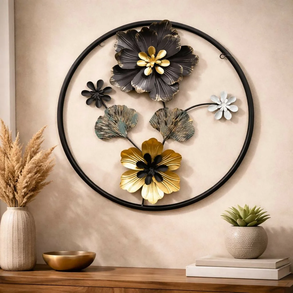 Enhance your interiors with this elegant metal floral round wall art décor. Featuring beautifully crafted flowers and leaves within a modern circular frame, this decorative wall hanging adds a sophisticated and artistic touch to any space. The stylish combination of black and gold tones creates a luxurious look that complements both modern and classic interiors. Perfect for living rooms, bedrooms, hallways, offices, or entrance walls, this decorative wall sculpture brings nature-inspired beauty and elegance to your home. It also makes a wonderful gift for housewarmings, weddings, and festive occasions.