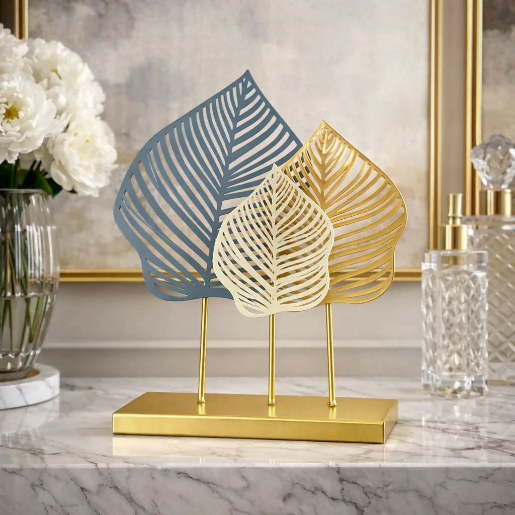 metal leaf decor, table showpiece, home decor item, decorative accent, modern decor, living room decor, office desk decor, shelf decoration, artistic showpiece, home decoration item, premium decor piece, gift item home decor, designer decor, interior decoration