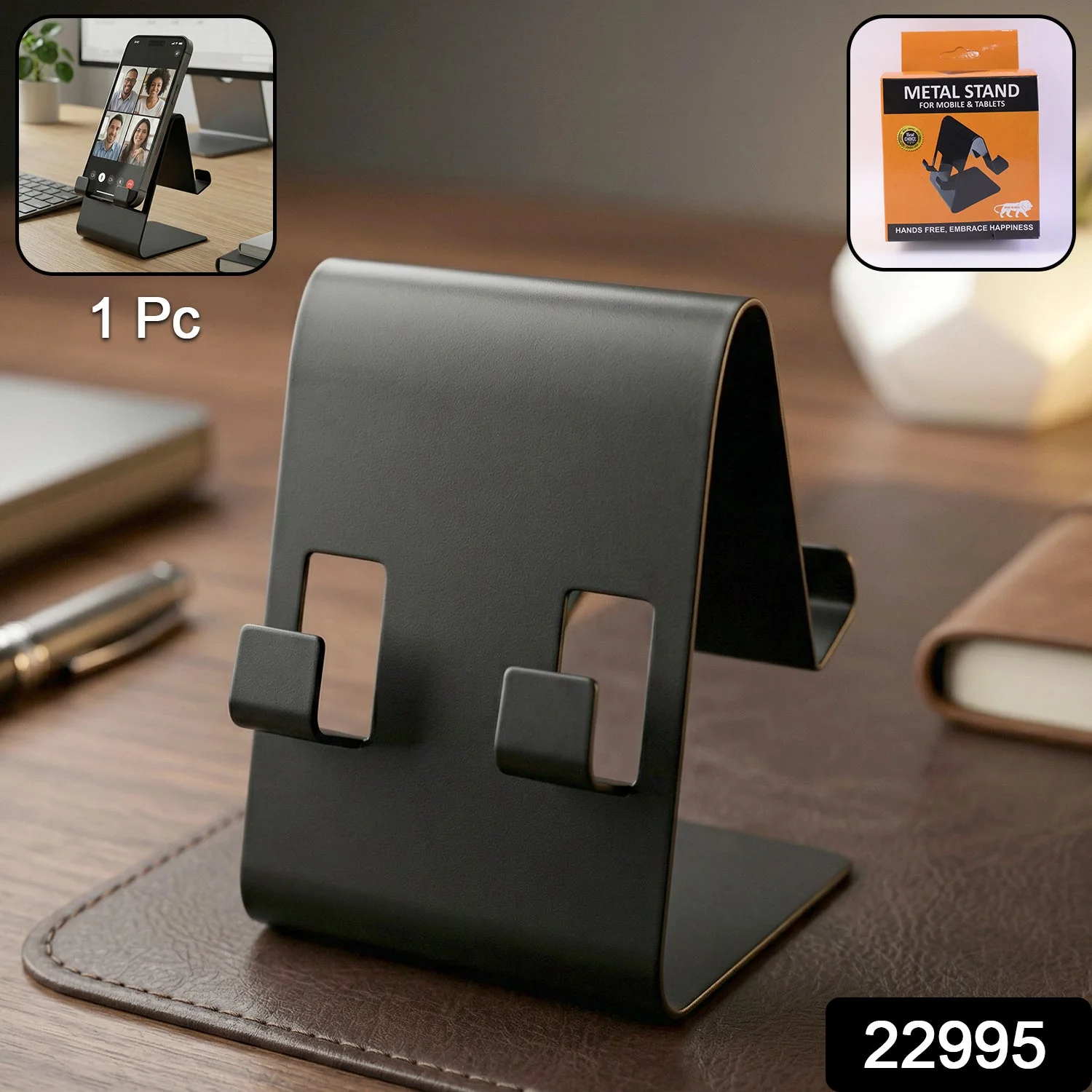 Metal Mobile Phone & Tablet Stand for Desk Foldable Stable Holder for Smartphones and Tablets Hands-Free Viewing Stand for Video Calls Office Work and Study Use 1 Pc, Black Color