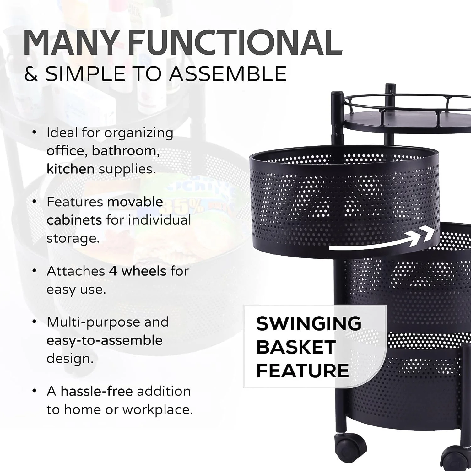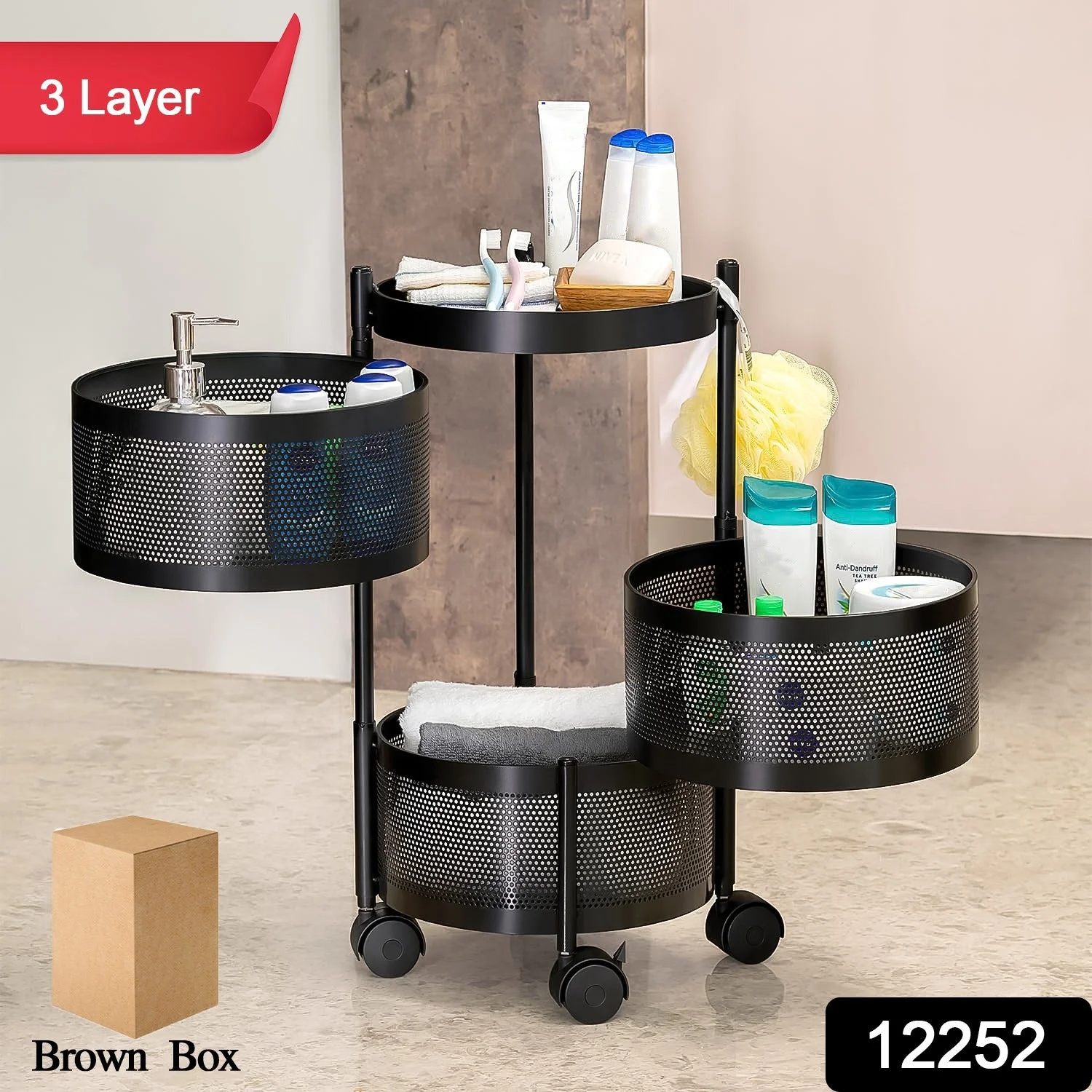 Metal Round High Quality Kitchen Trolley Kitchen Organizer Items and Kitchen Accessories Items for Kitchen Rack Round Design for Fruits & Vegetable Onion Storage Kitchen Trolley with Wheels (4 Layer / 1 Pc)